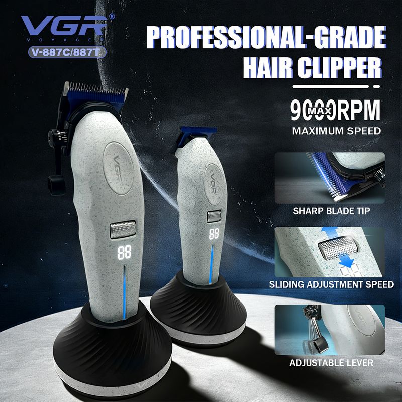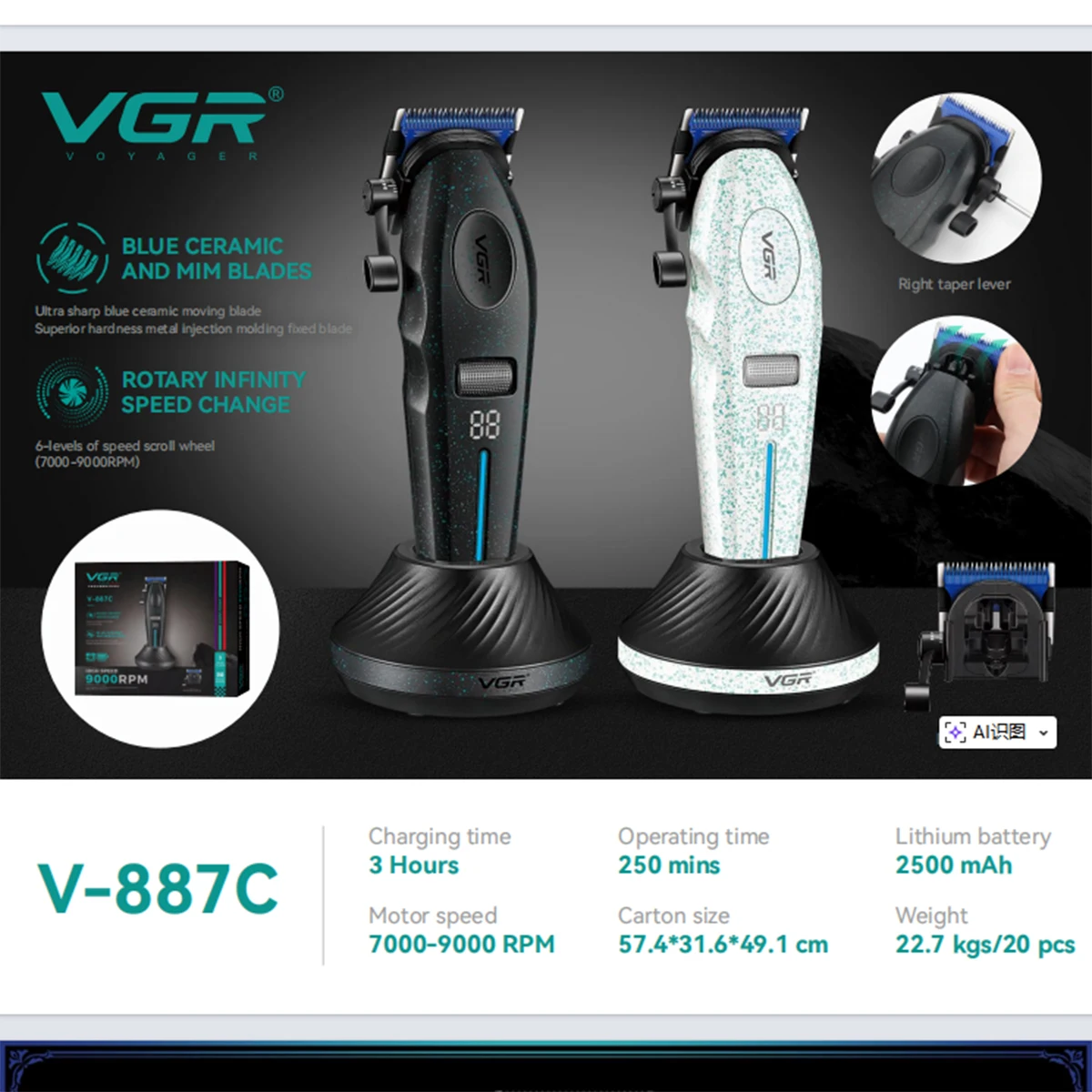 VGR Hair Clippers Professional Rechargeable Right Taper Trimmer 9000RPM Blue Ceramic Blade Hair Clippers For man V-887 V-887T