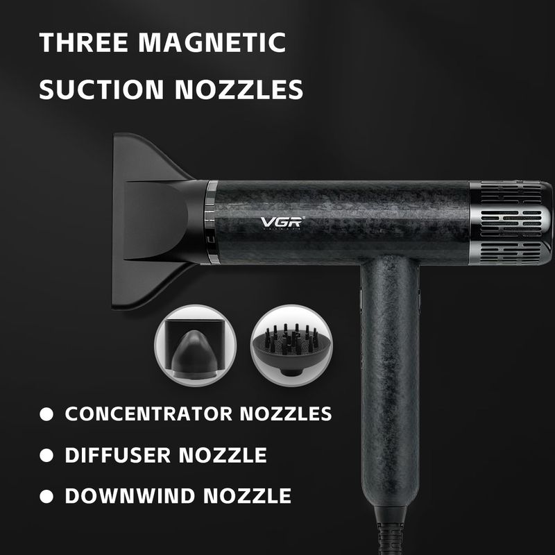 β Interchangeable Magnetic Nozzles for Versatile Styling:Achieve any look effortlessly with three magnetic-attachment nozzles, including a concentrator for smoothness, a diffuser for curls, and a wide nozzle for volume.
