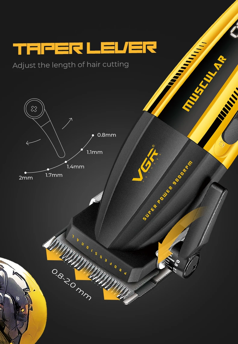 β 5-Position Adjustable Lever 0.8mm-2.0mm Range:Achieve precise fade transitions and customized lengths with a micro-adjustable lever that offers five precise positions from 0.8mm to 2.0mm, ideal for detailed blending and seamless styling.