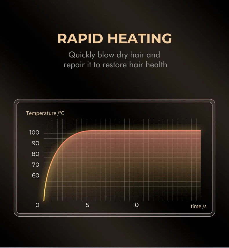Brushless Motor :Equipped with a brushless motor, the V-401 hair dryer offers longer lifespan, reduced noise, and higher efficiency, making it a reliable choice for frequent use.