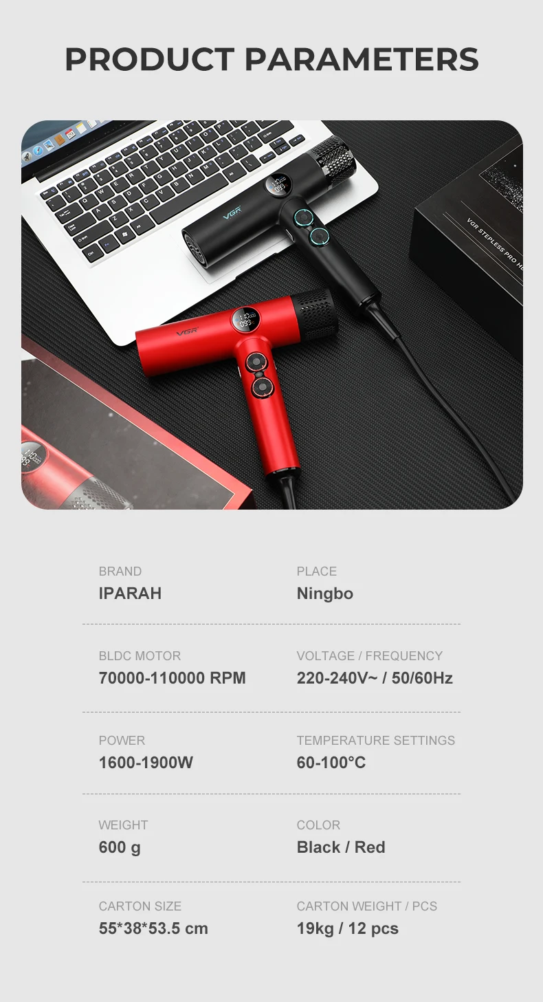 VGR Leafless Hair Dryer Professional Blow Dryer Brushless Motor 110000 RPM Suitable For Home Salons Powerful Hair Dryer V-401