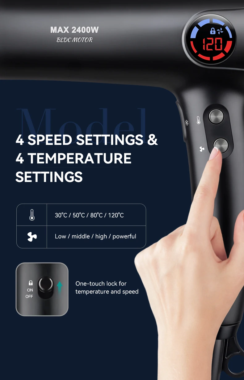 4-Speed Wind Adjustment: Provides four distinct wind speed options, allowing you to customize the airflow intensity according to your preference and styling requirements, from gentle drying to powerful styling.