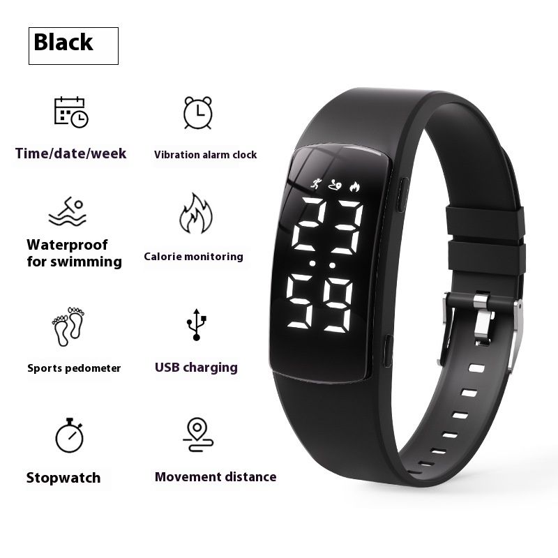 Vibration Alarm Clock Smart Waterproof Electronic Watch Black