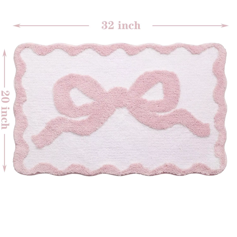 VIKAMA 1pcs Pink Bow Bath Mat for Bathroom Cute Preppy Rugs with Scalloped Edges, Soft Microfiber, Ultra Absorbent, Non-Slip