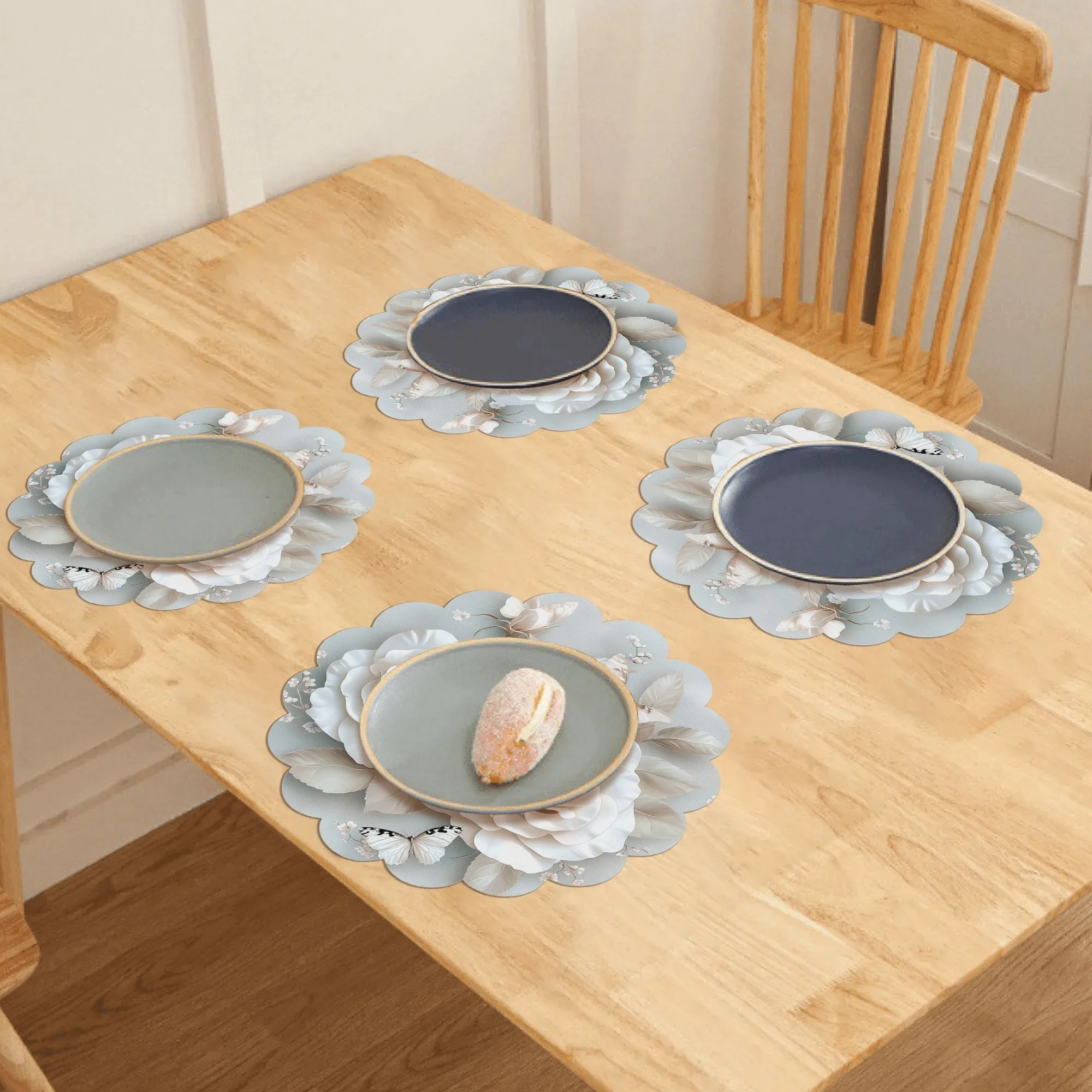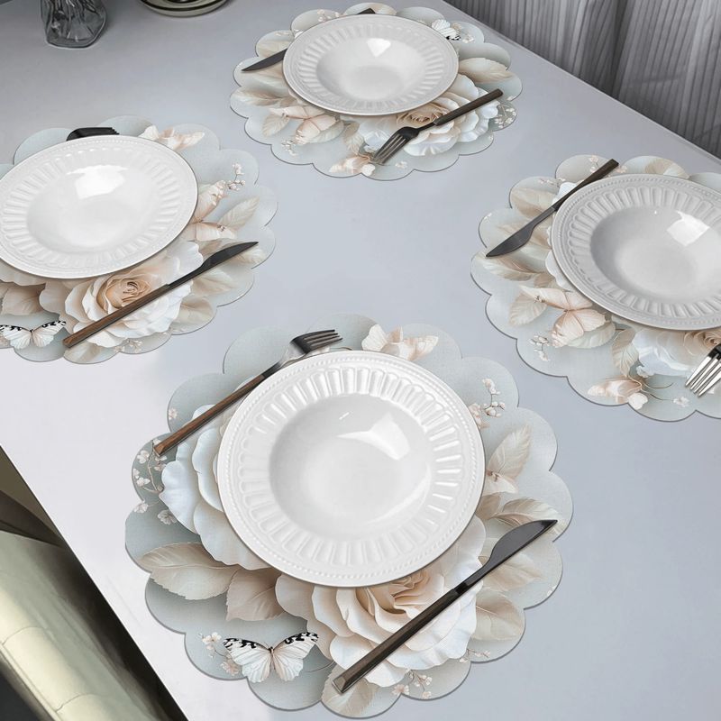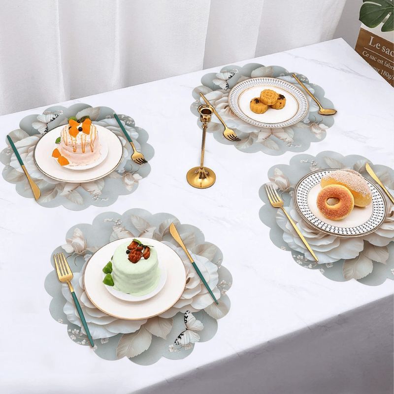 VIKAMA 4PCS Spring Floral Butterfly Hummingbird Hydrangea Wavy Placemats Waterproof Heat Resistant Table Decorative Mats