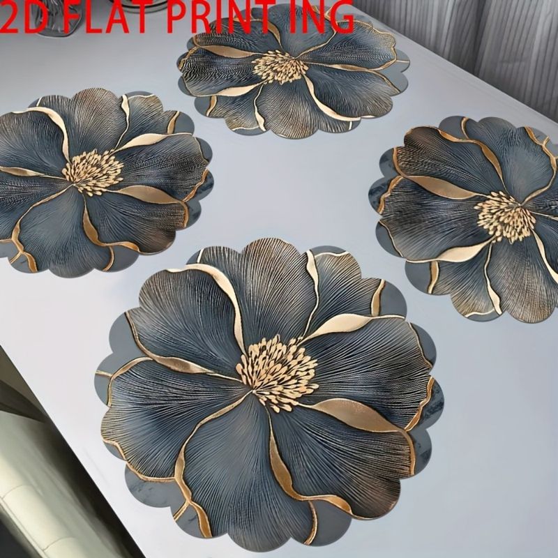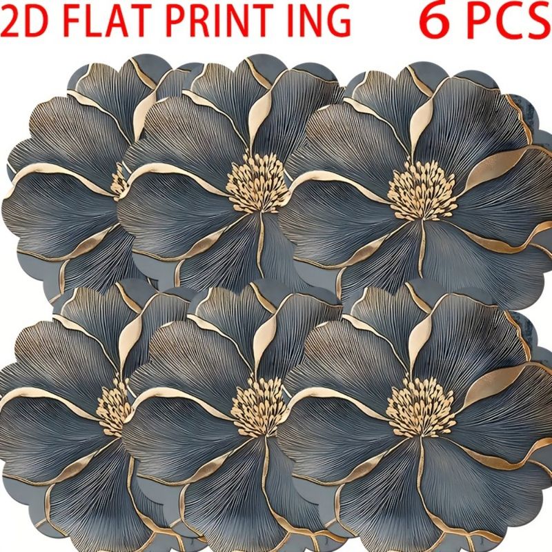 VIKAMA 6-Piece Round Placemat Set, Non-Slip Table Mats, Floral Placemats for Dining Tables, Kitchens, and Home Decor
