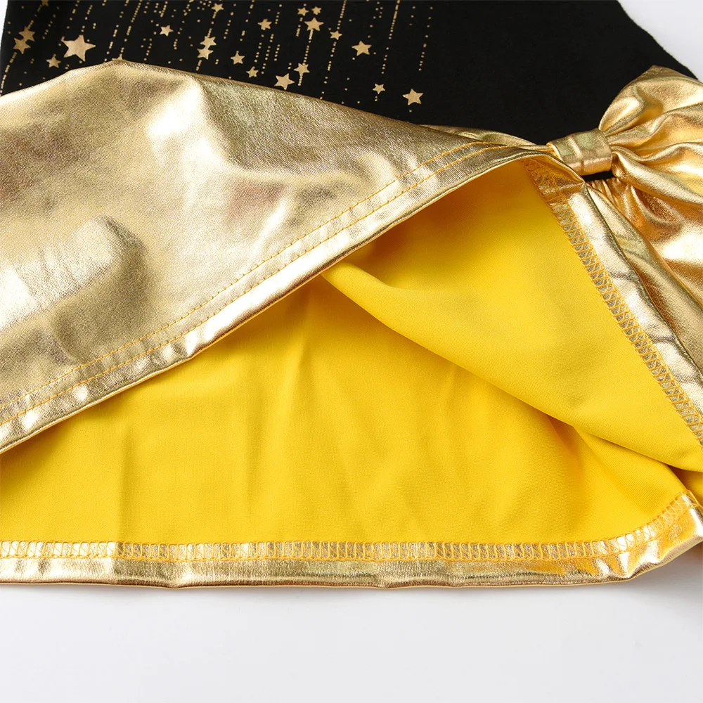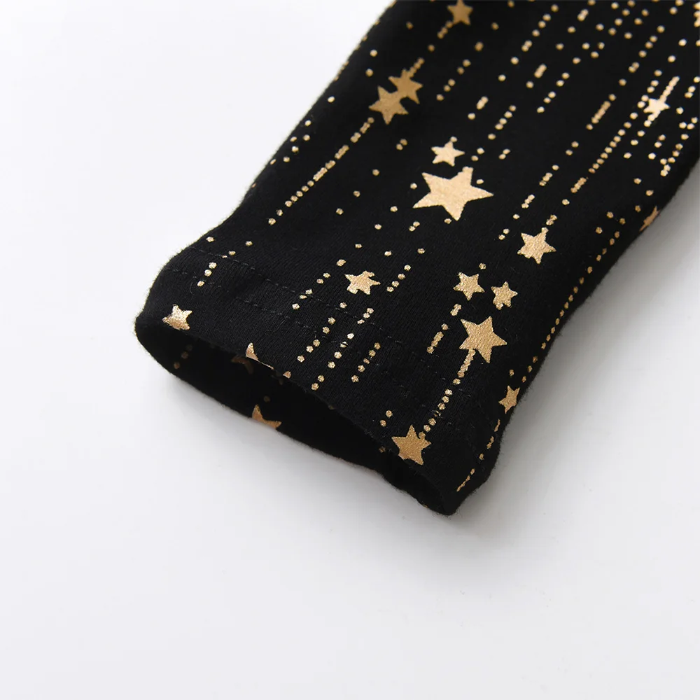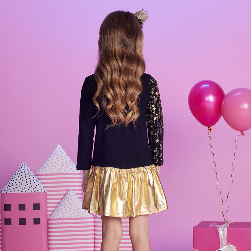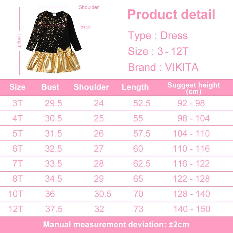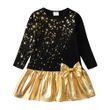 VIKITA Girls Christmas New Year Gift Dress Kids Autumn Winter Golden Star Print Straight Dresses with Bowknot Children Clothes