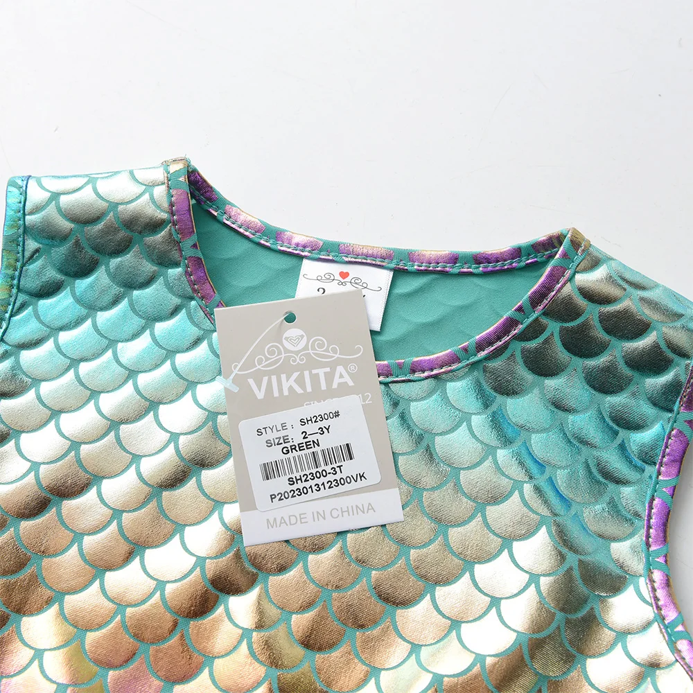 VIKITA Kids Summer Sleeveless Dresses Girls Mermaid Dress Girls Birthday Party Tutu Mesh Mesh Layered Dresses Kids Clothes 3-8Y