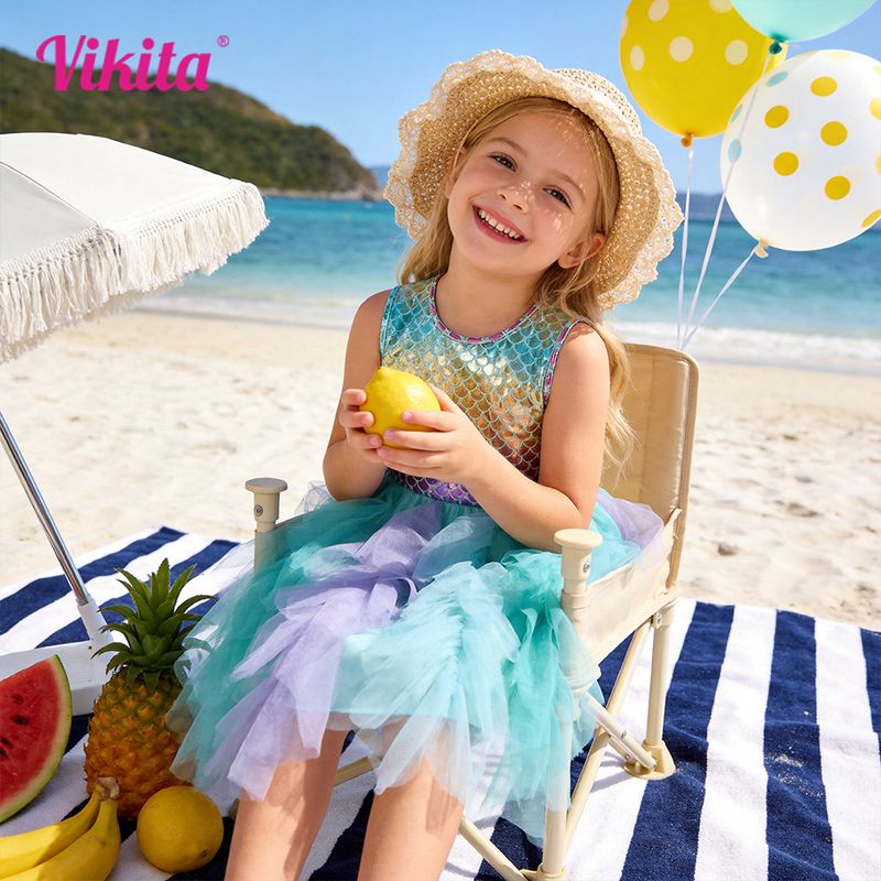 VIKITA Kids Summer Sleeveless Dresses Girls Mermaid Dress Girls Birthday Party Tutu Mesh Mesh Layered Dresses Kids Clothes 3-8Y