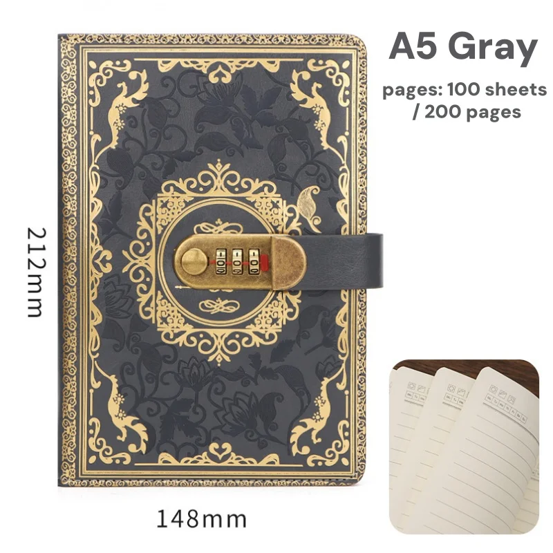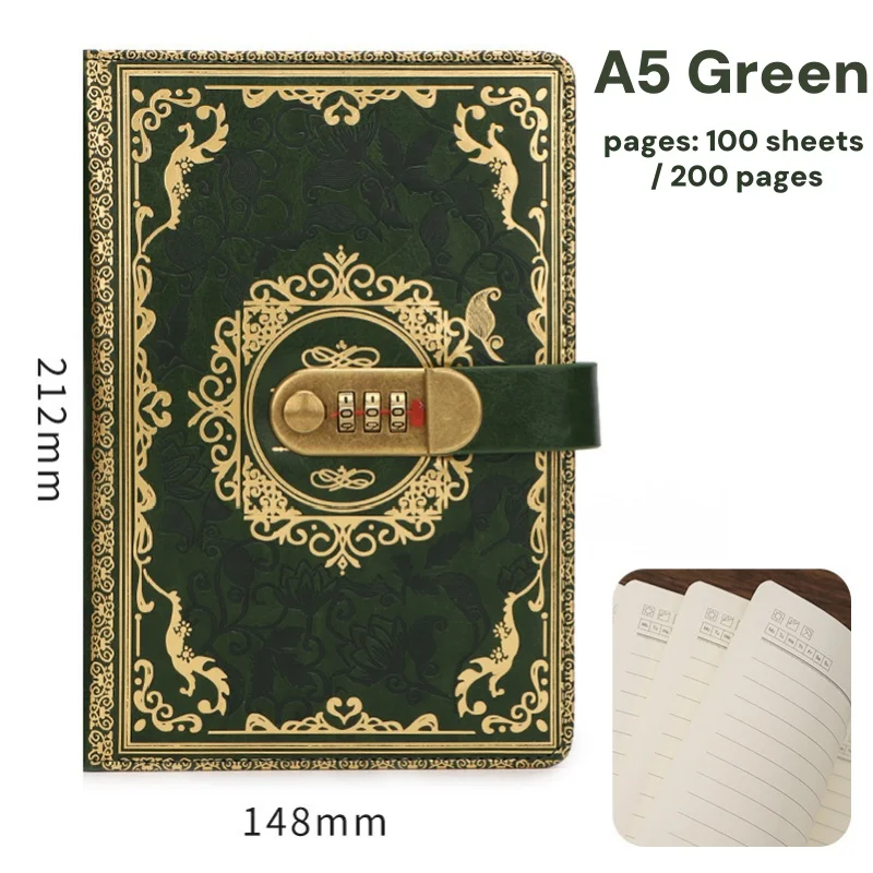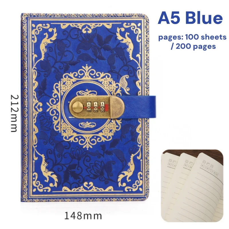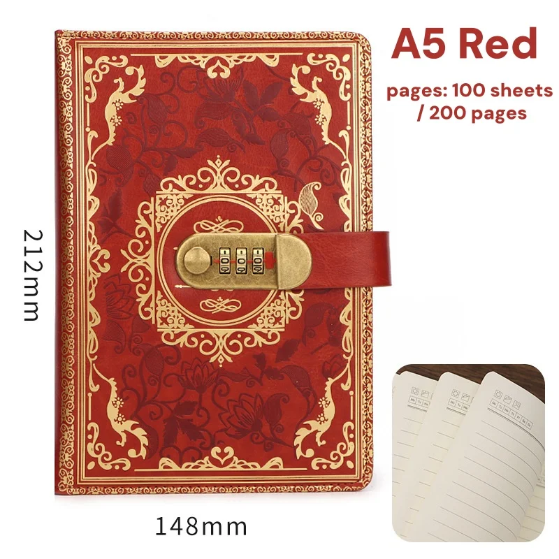 The Vintage A5 Lock Diary features an elegant antique PU leather cover, adding a touch of sophistication to your personal notes.