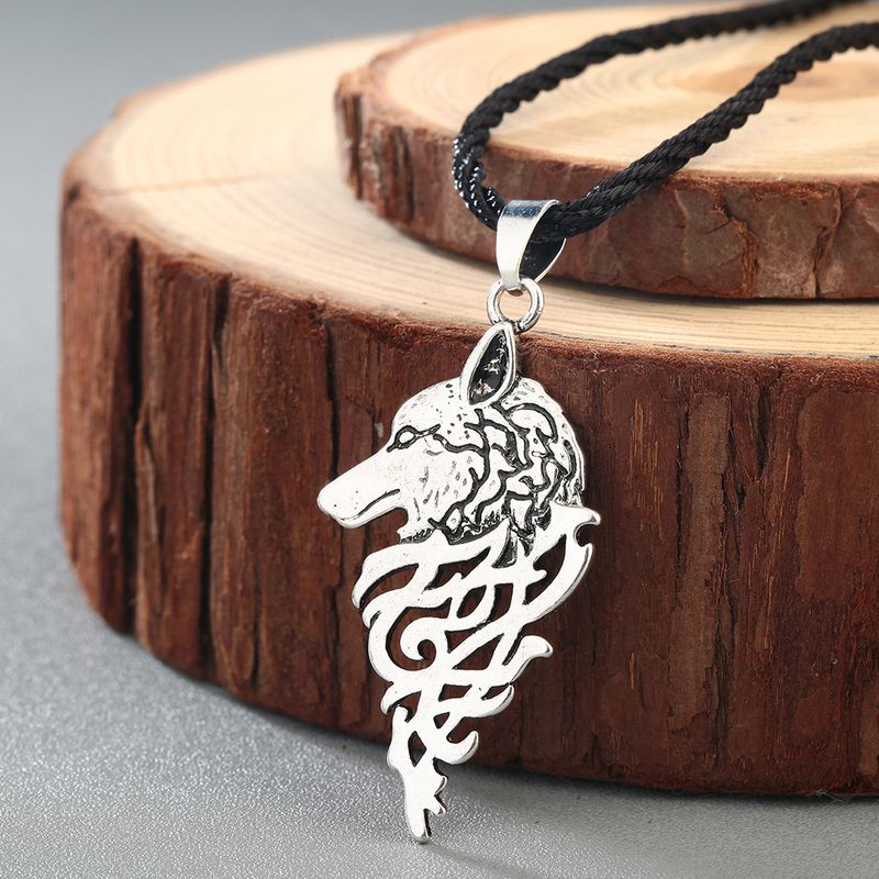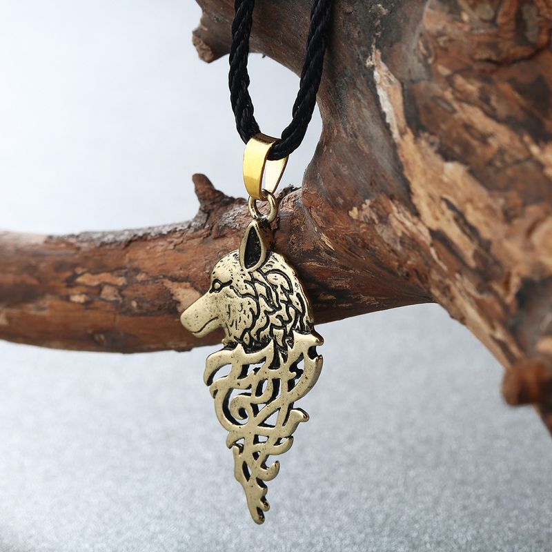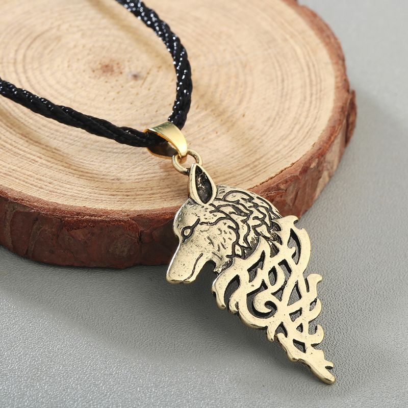 Vintage Ancient Silver Animal Wolf Pendant Necklace Gold