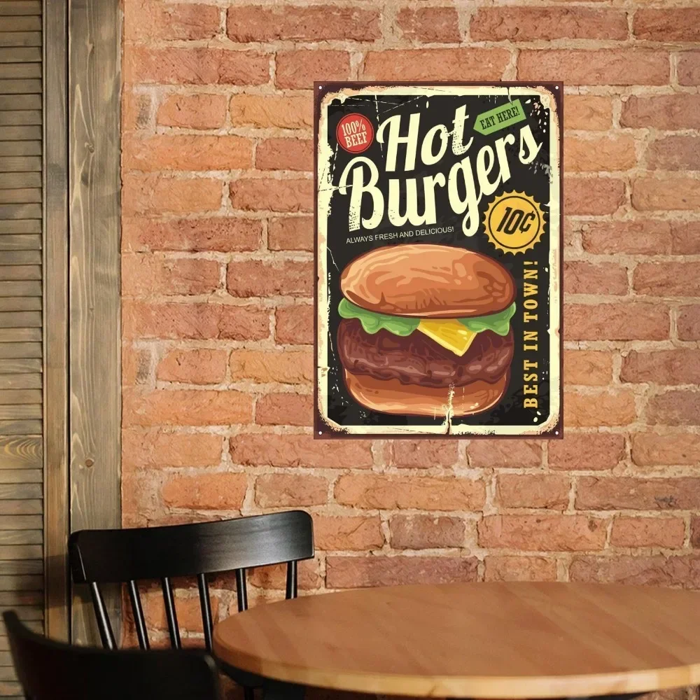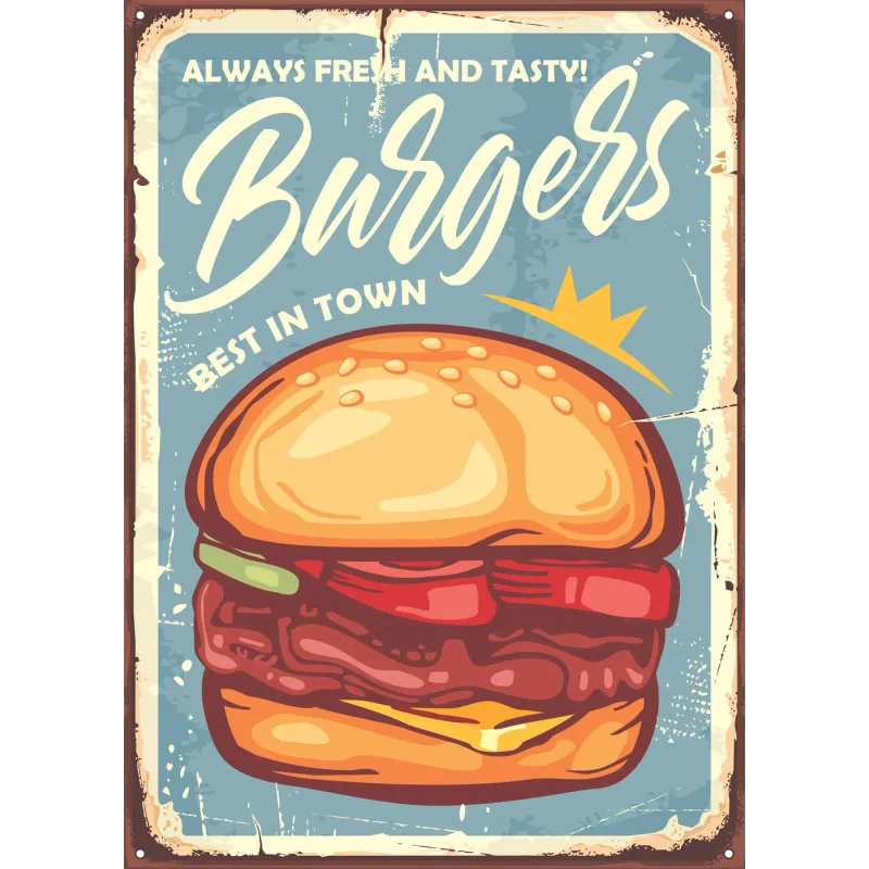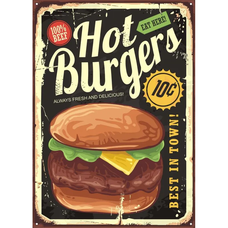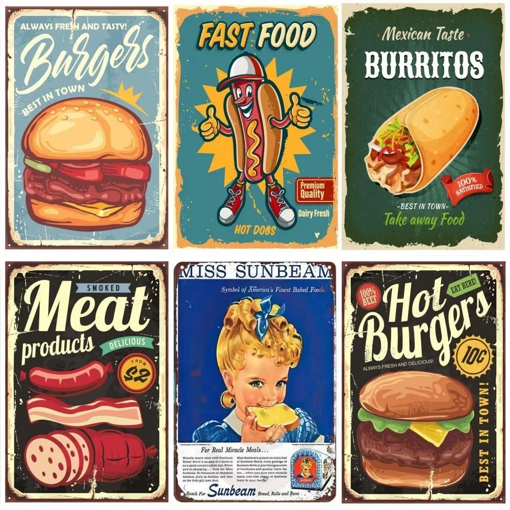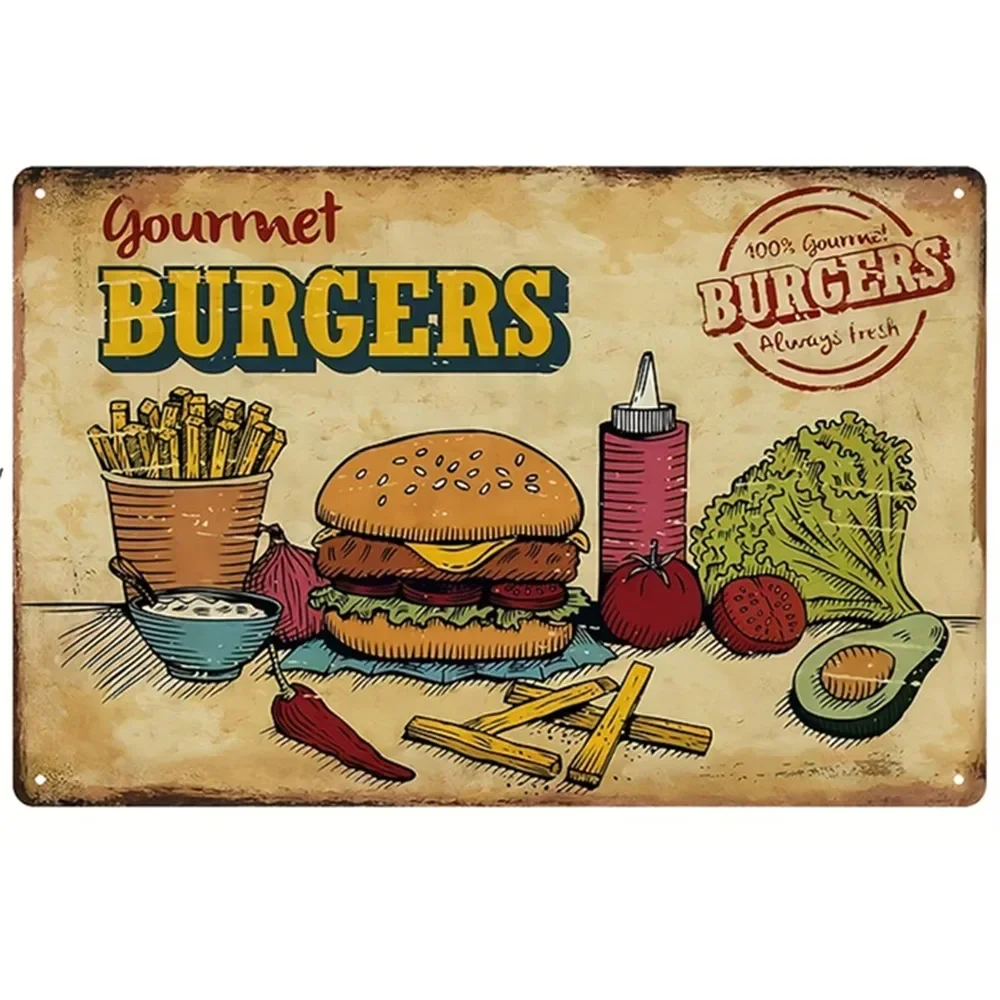 Vintage Cuisine Burgers, Hot Dogs, Pizza, Grilled Meat Metal Tin Sign Plaque Decoration Home Man Cave Bar Cafe Club Wall Decor
