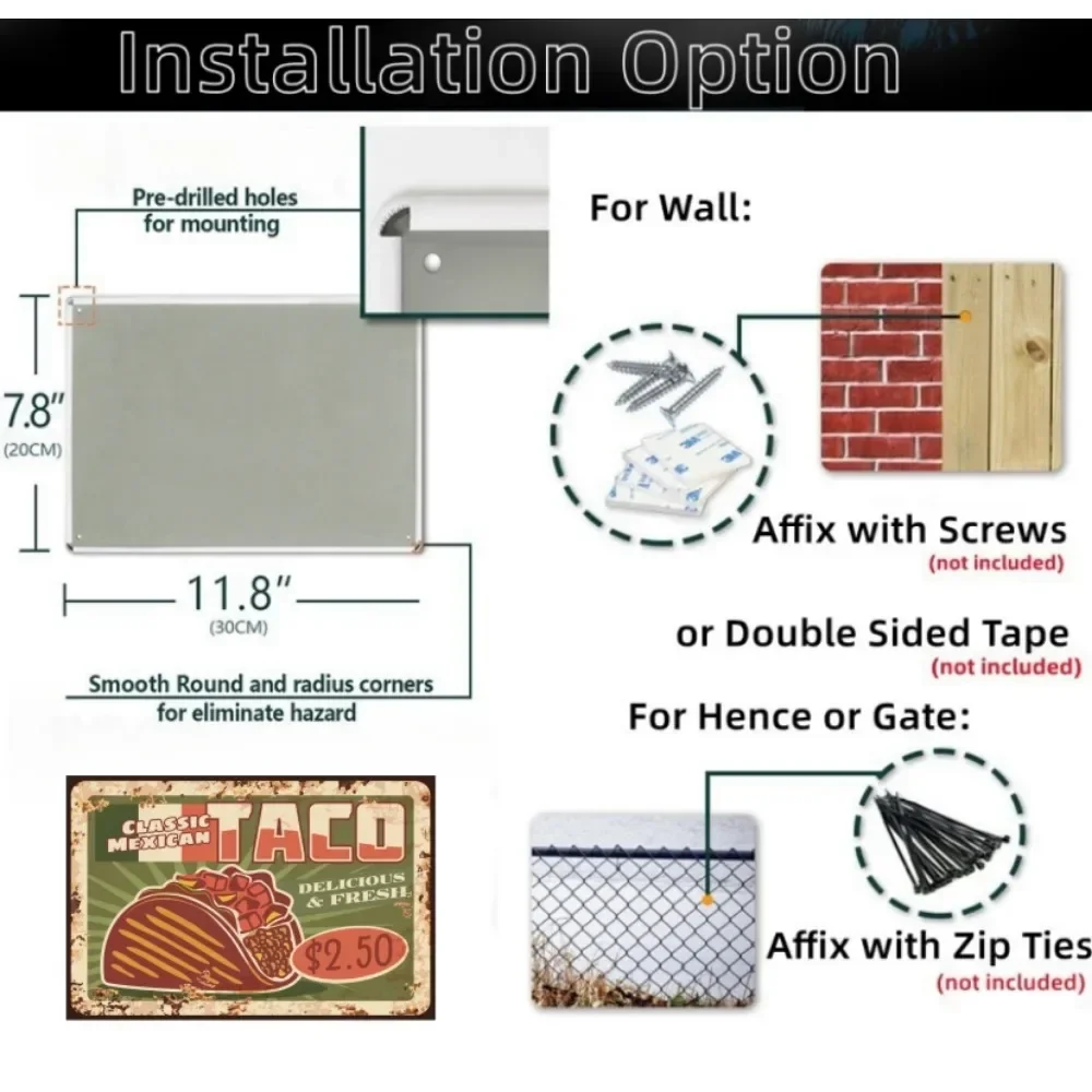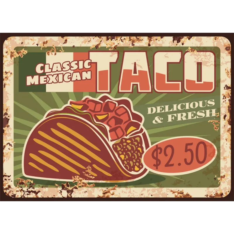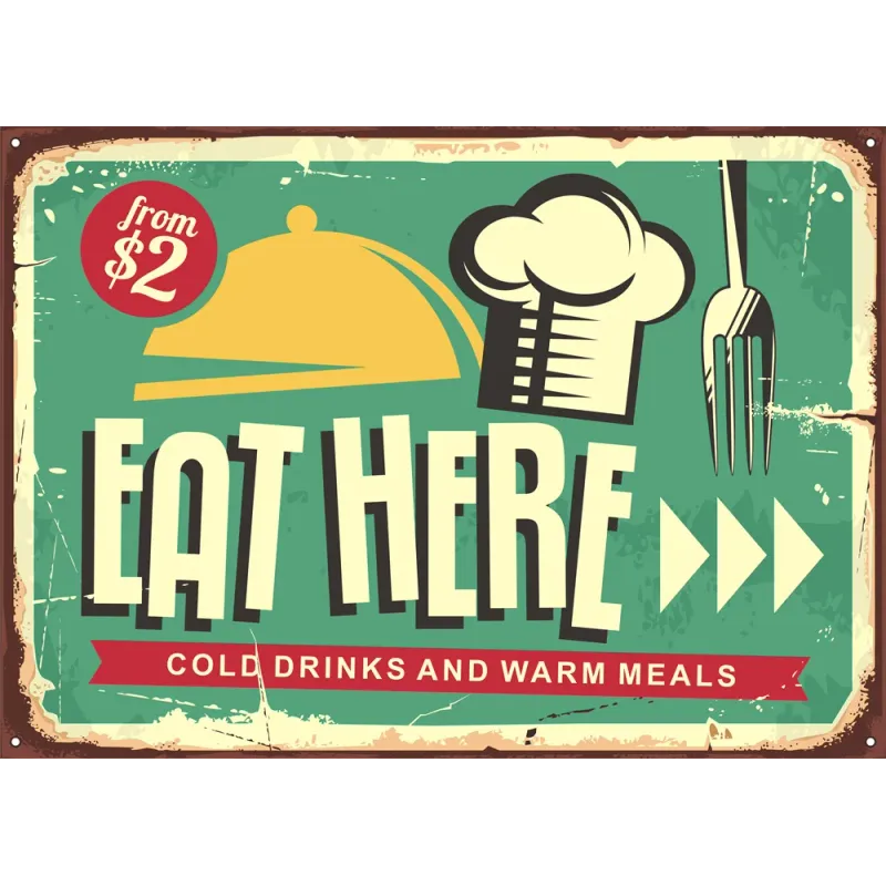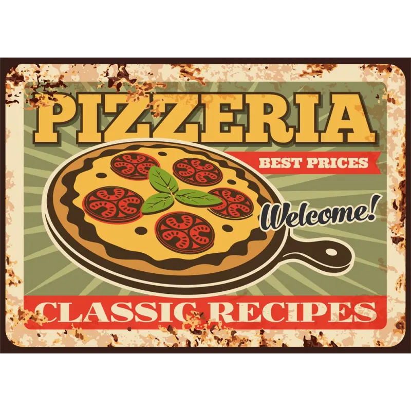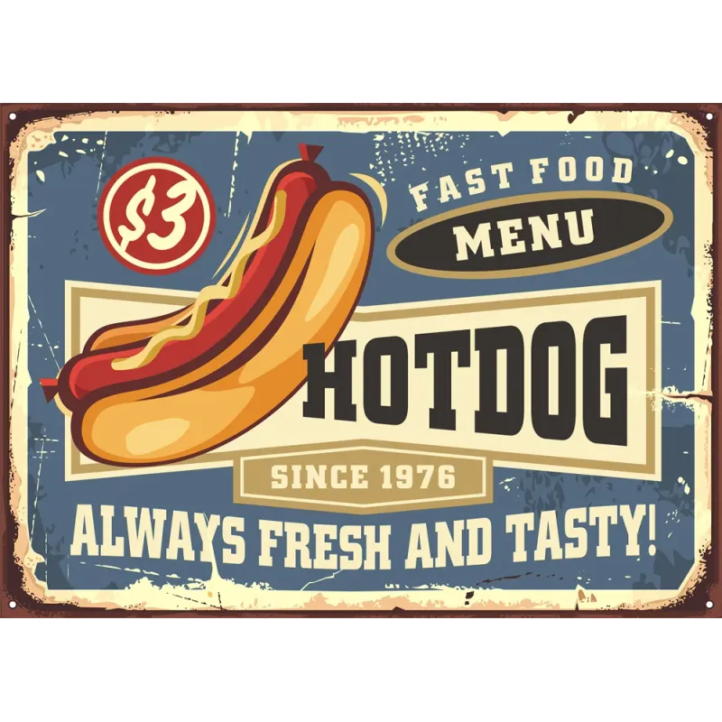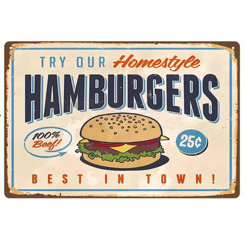 Vintage Cuisine Burgers, Hot Dogs, Pizza, Grilled Meat Metal Tin Sign Plaque Decoration Home Man Cave Bar Cafe Club Wall Decor