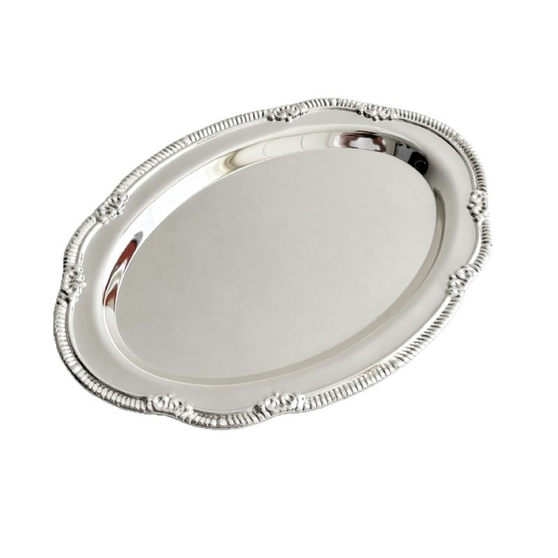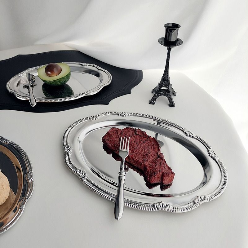 Vintage Embossed Silver Tray Serving Platter For Desserts Jewelry Storage Organizer Snack Plate Dining Table Decoration