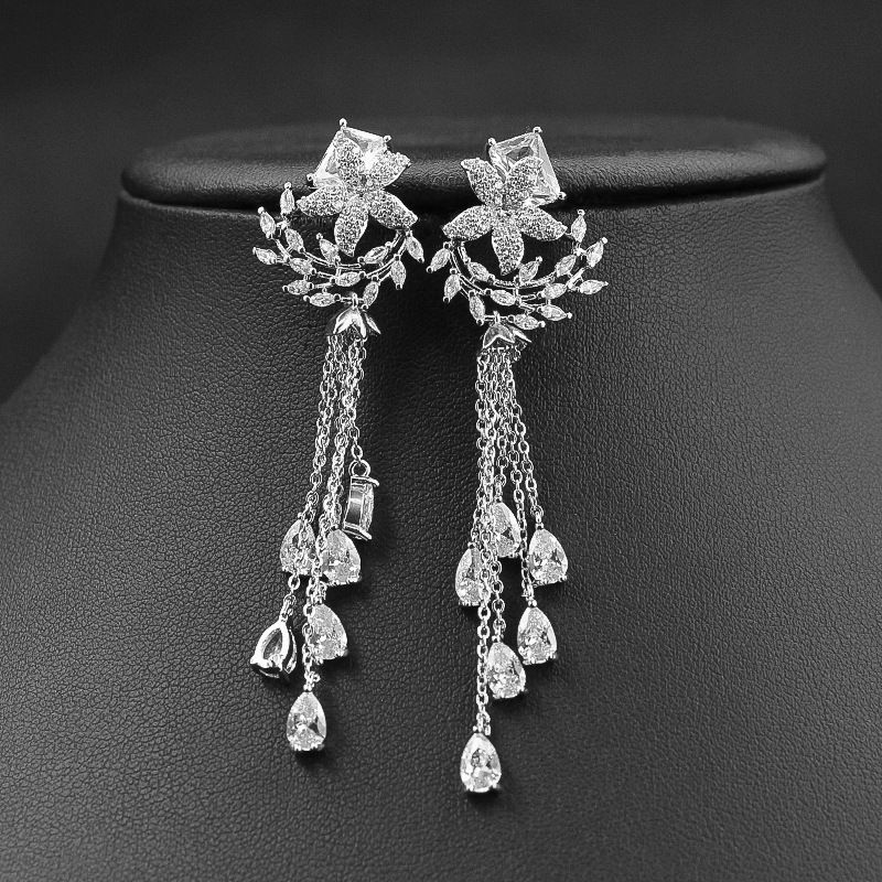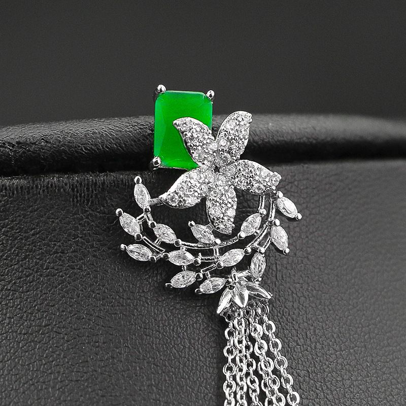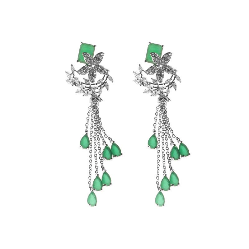 Vintage Emerald Green Gemstone Stud Earrings Luxury Long Earrings White
