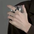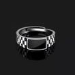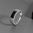 Vintage Faux Onyx Rings for Men Temperament Stainless Steel Adjustable Open Ring Silver Color Fashion Punk Jewelry Gifts