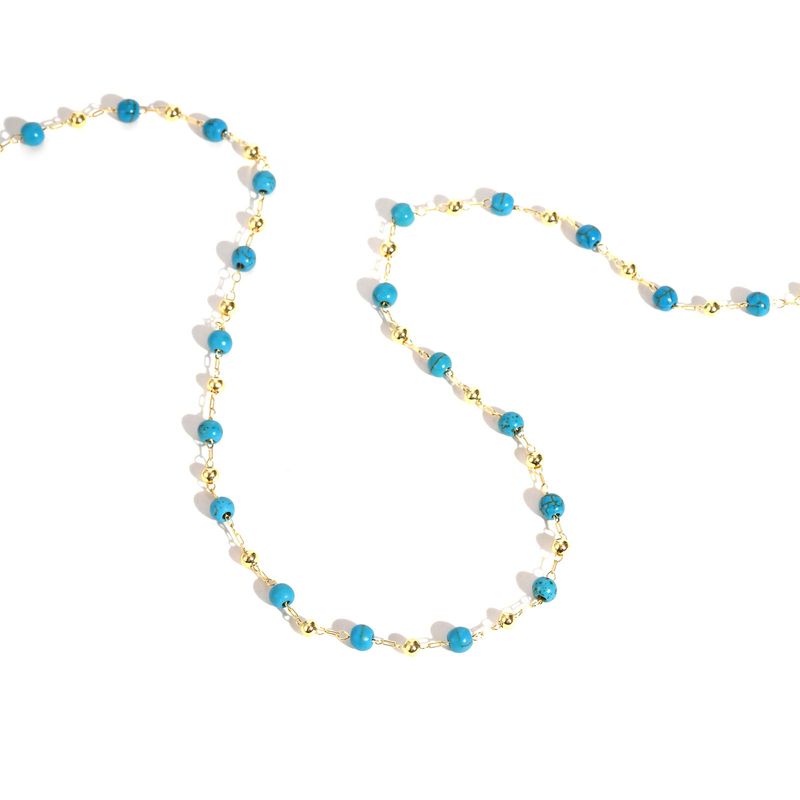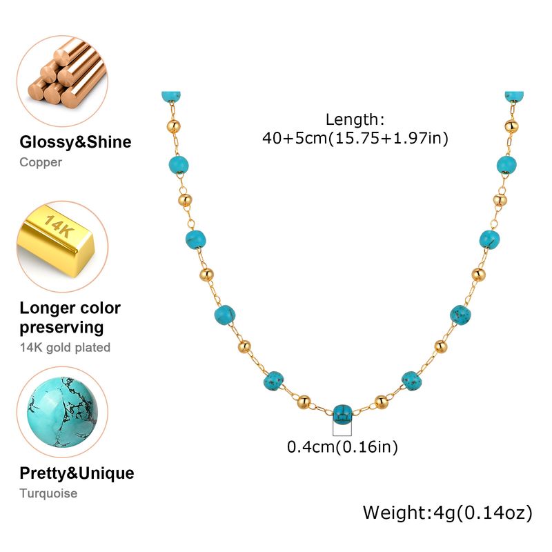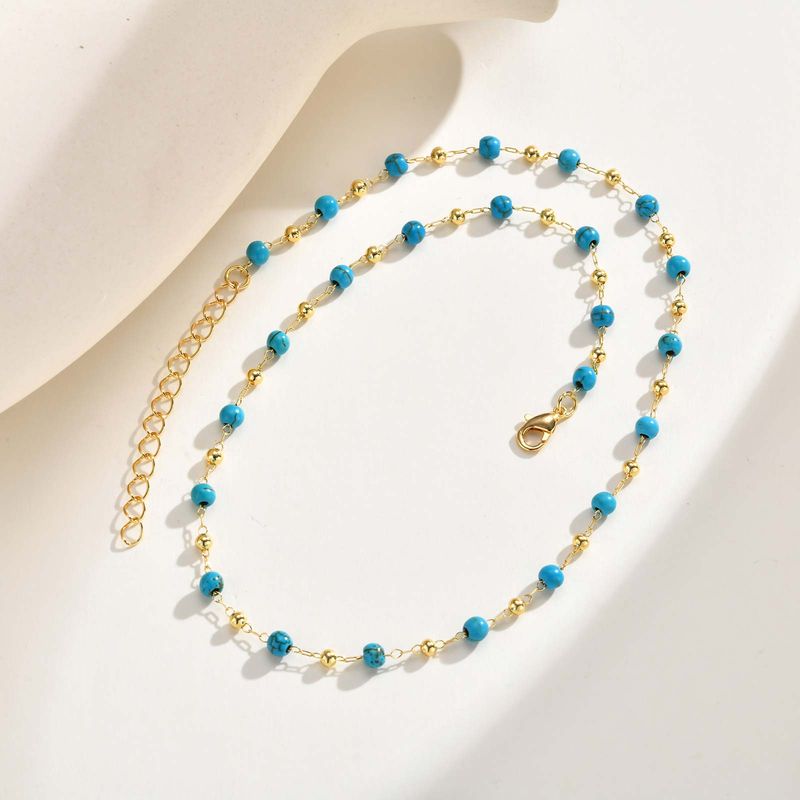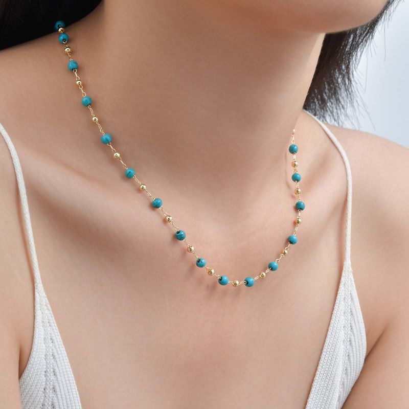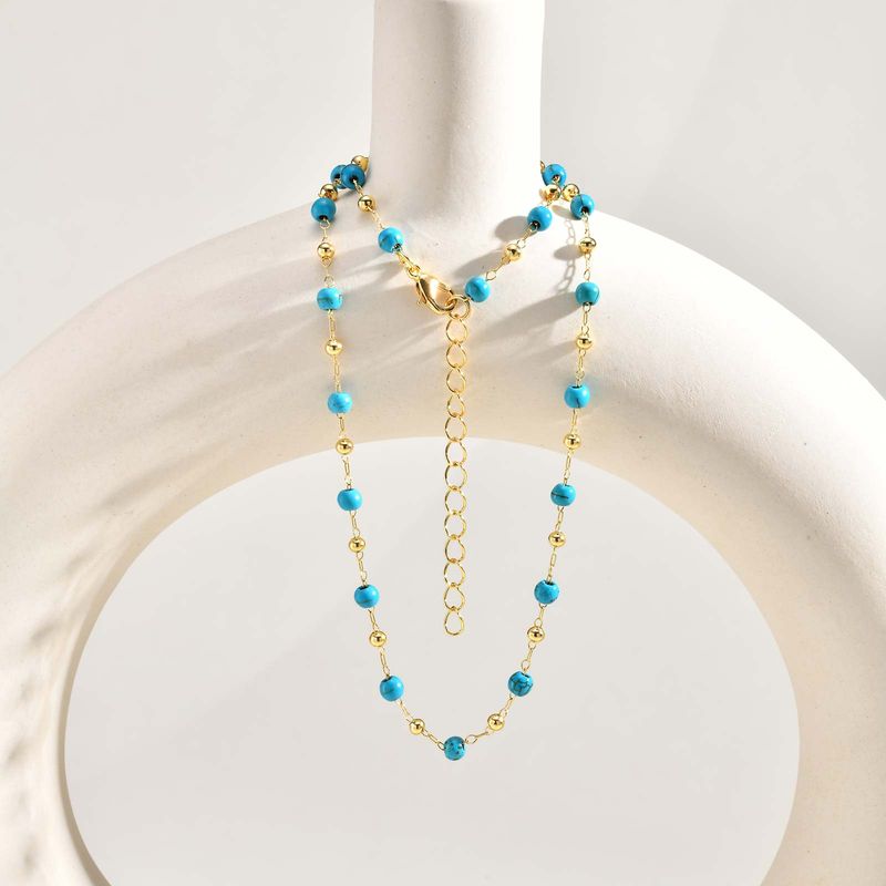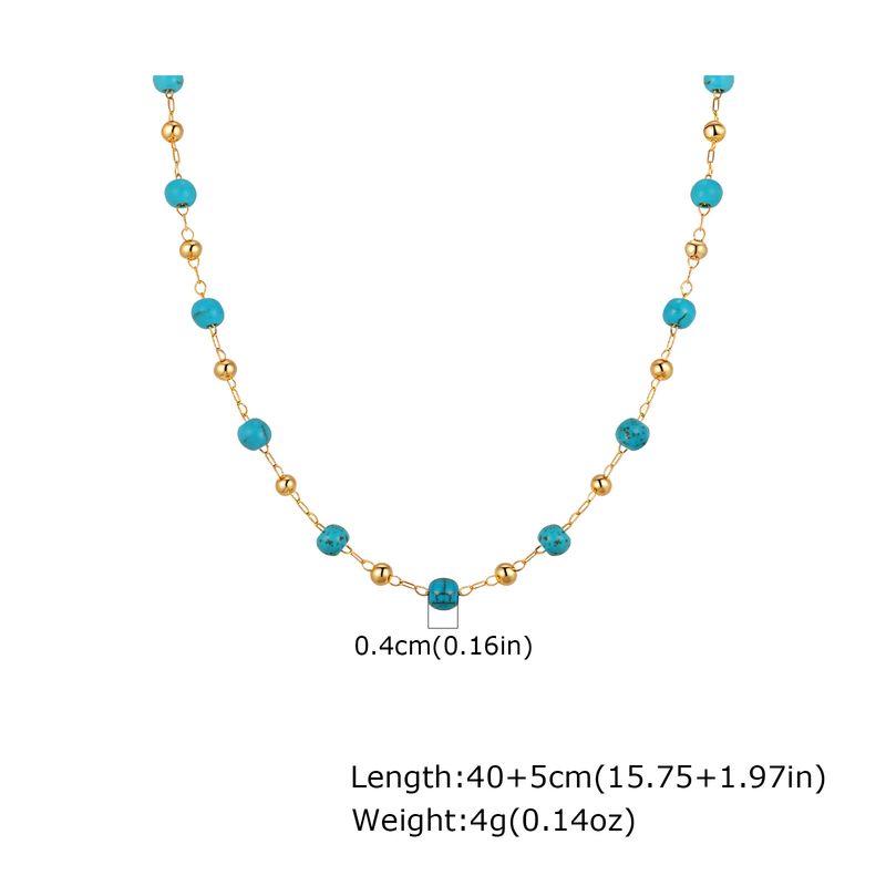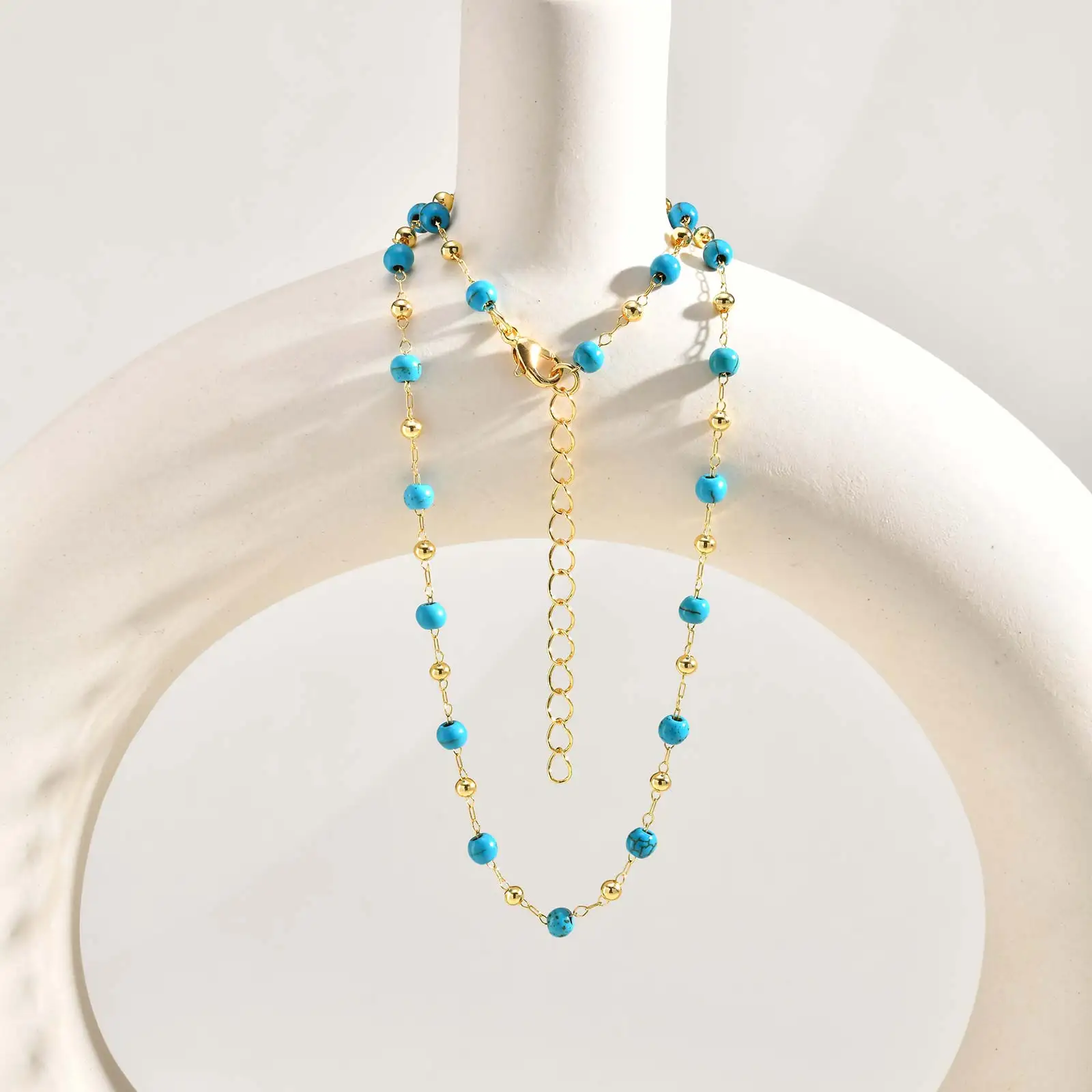 Vintage High Quality Blue Natural Stone Turquoise Beads Chain Necklace, Fashion Party Daily Neck Jewelry for Women Gift