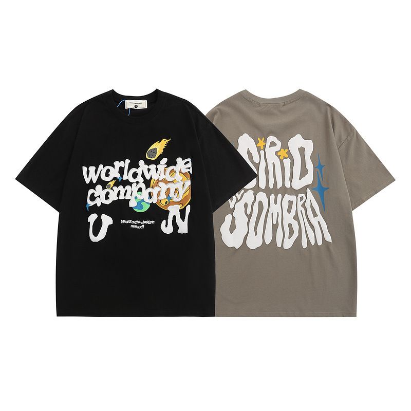 Vintage Letter Print Short Sleeve T-shirt For Men And Women D102 Khaki 2XL