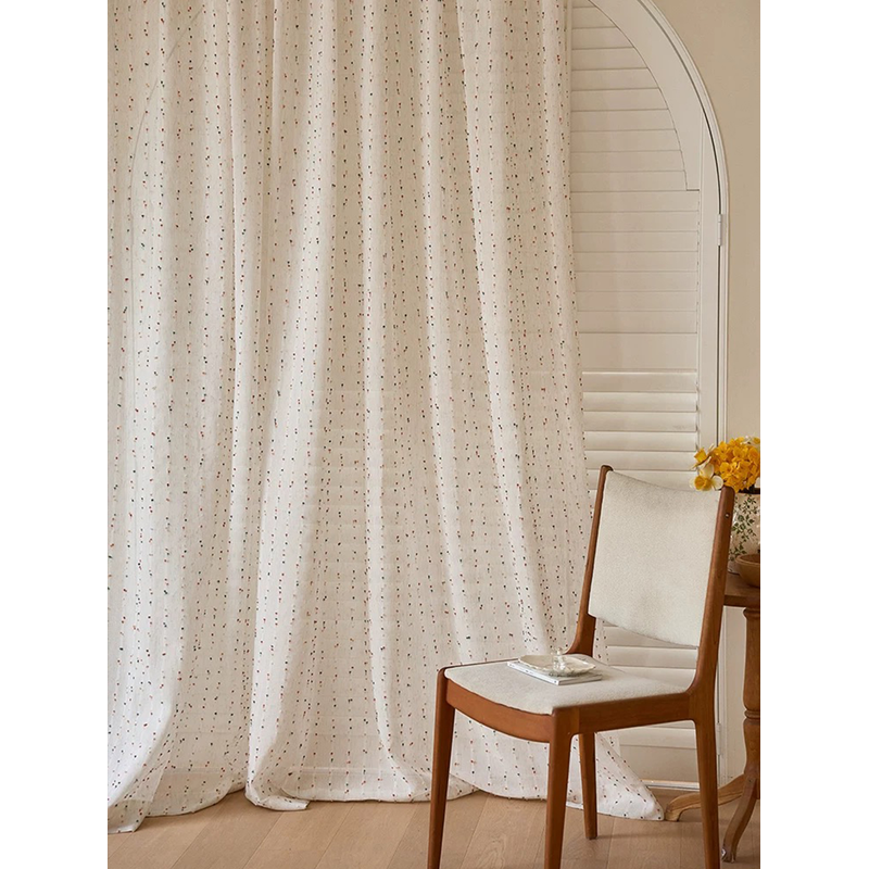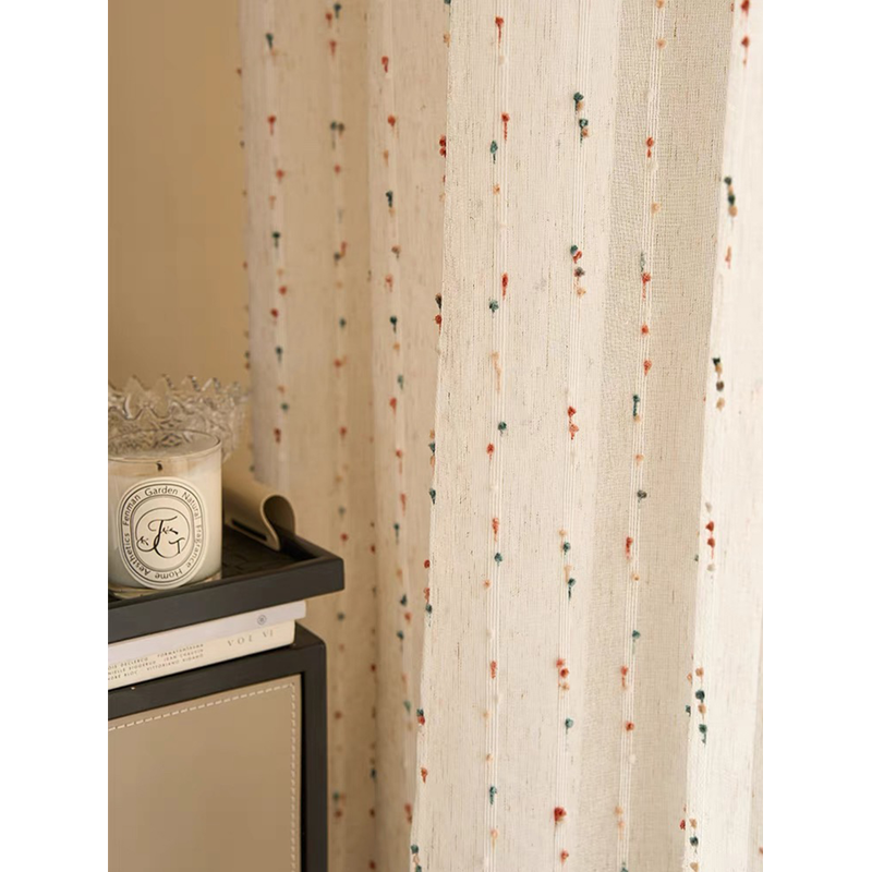 Vintage linen transparent curtain with rainbow jelly bean - rod bag design, easy to hang, very suitable for bedroom, living room