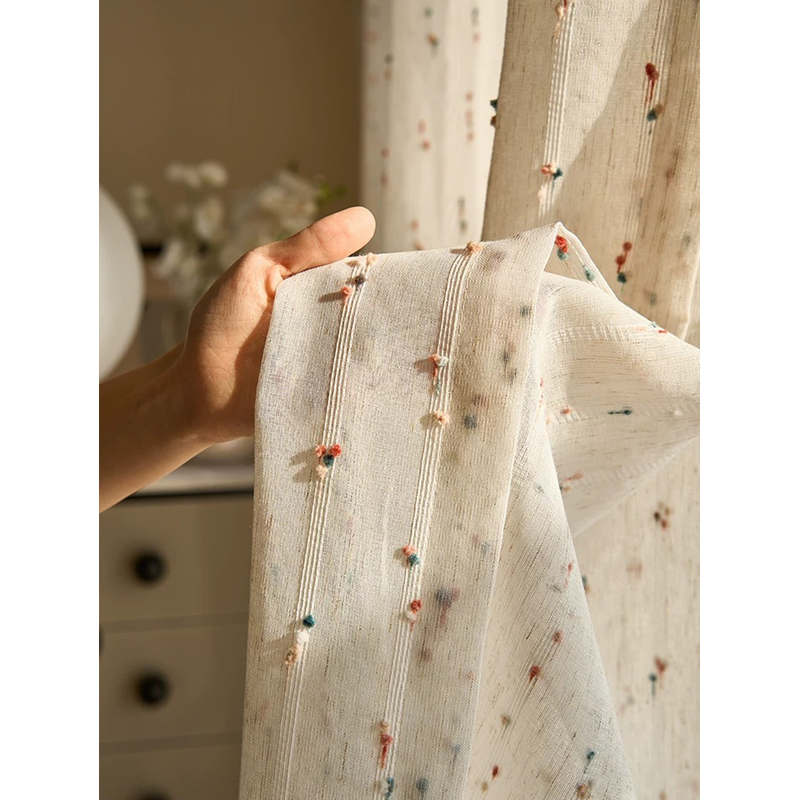 Vintage linen transparent curtain with rainbow jelly bean - rod bag design, easy to hang, very suitable for bedroom, living room