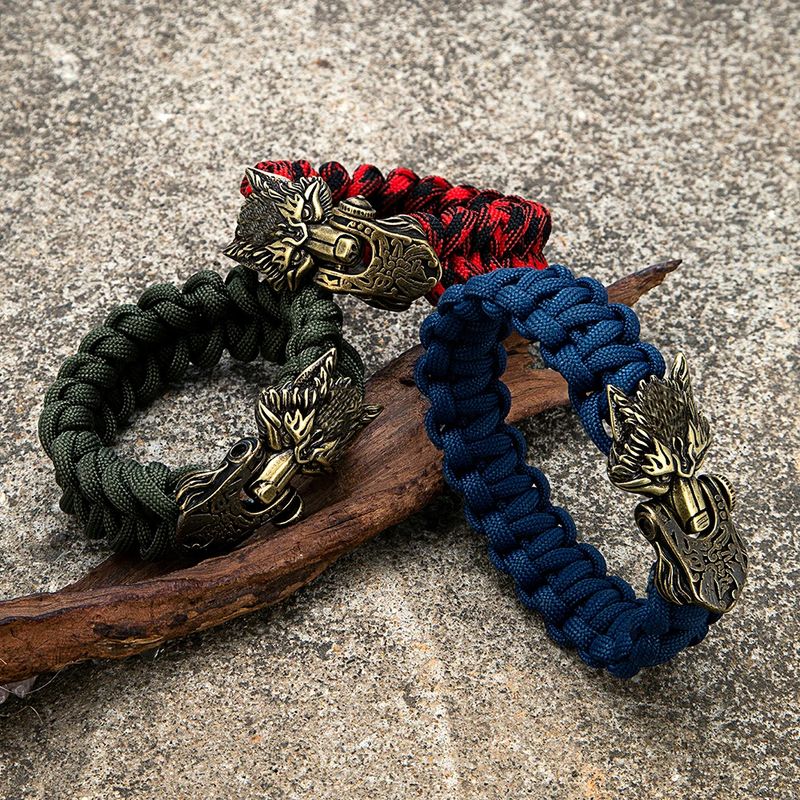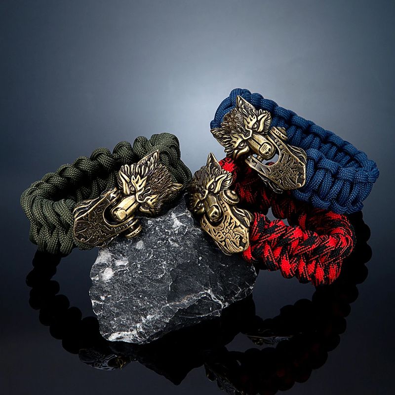 Theme: Norse Mythology Vikings Odin's Wolf Bracelets Paracord Rope Stainless Steel Wristband