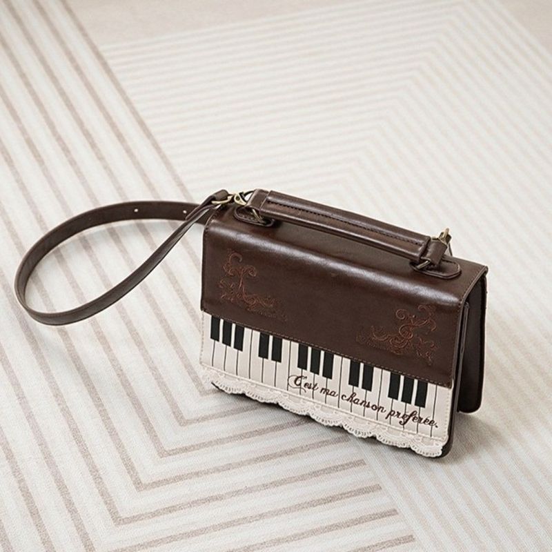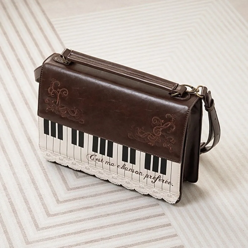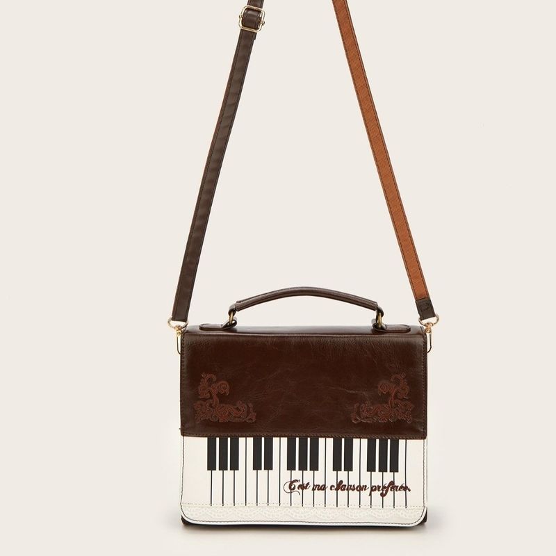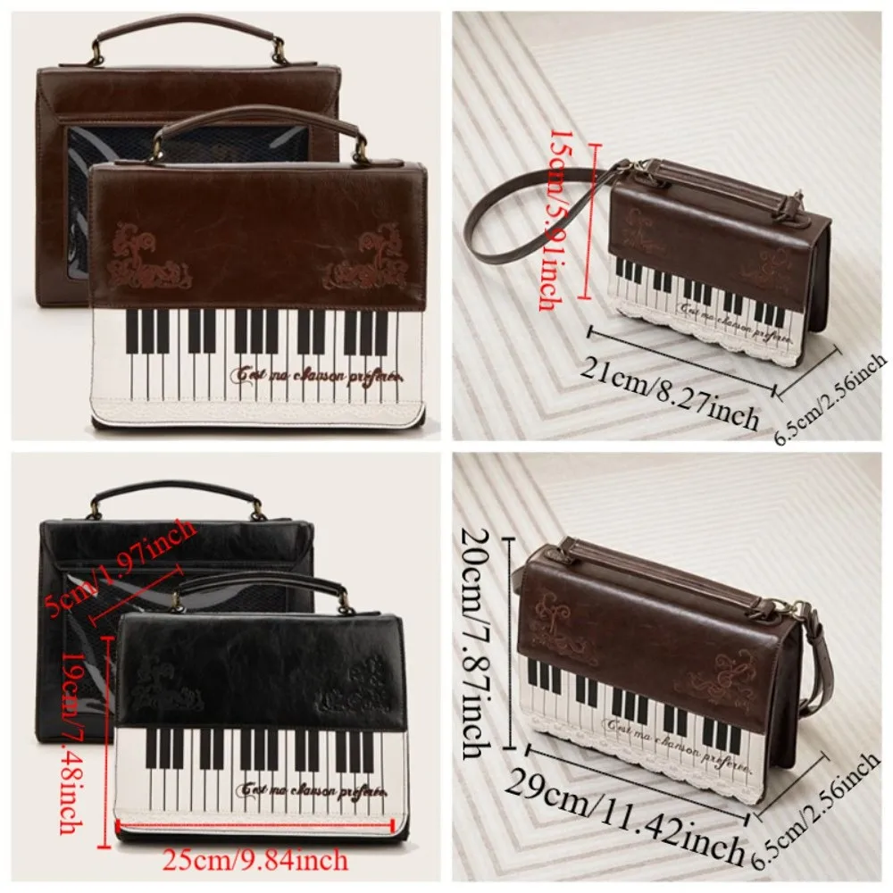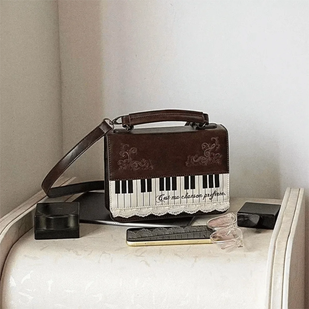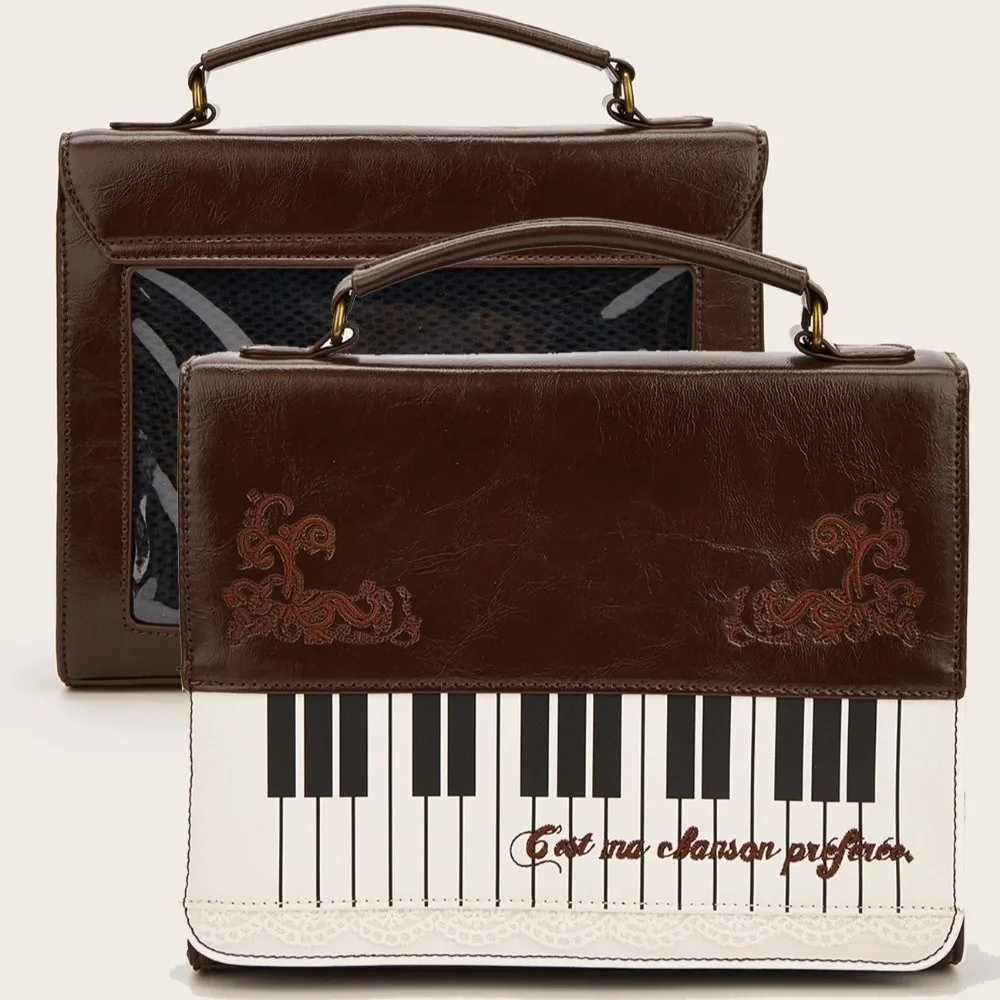 Vintage Piano Shoulder Bag Leather Patchwork Contrast Square Crossbody Bag Personalized Feature Brown Transparent Ita Backpack
