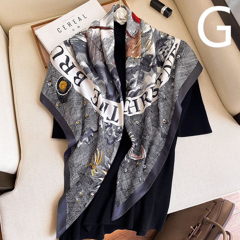 Vintage Printed Twill Embellished Warm Scarf G 90X90CM