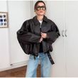 Vintage PU Leather Bomber Jackets 2025 Autumn New Ladies Zipper Lapel Long Sleeve Pocket Coat With Belt Women's Loose Streetwear