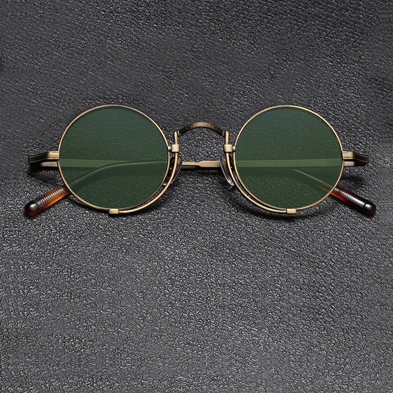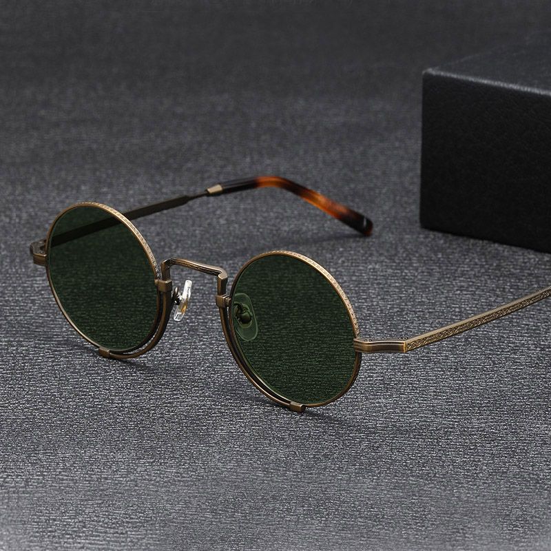 Vintage pure titanium circular UV400 polarized sunglasses with exquisite carved pattern frame, anti reflective 45mm glasses