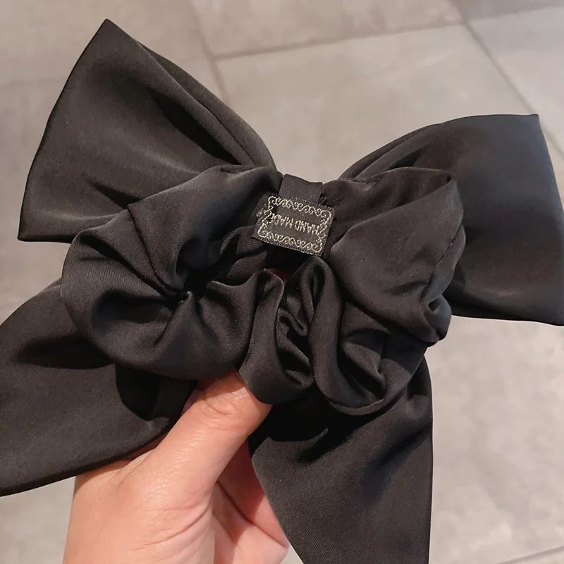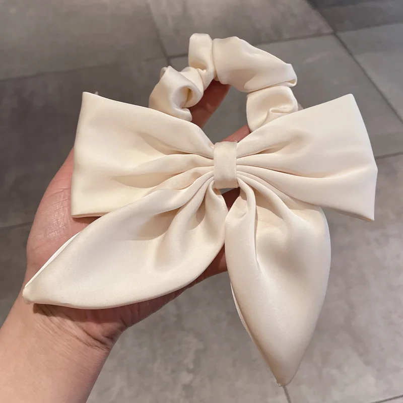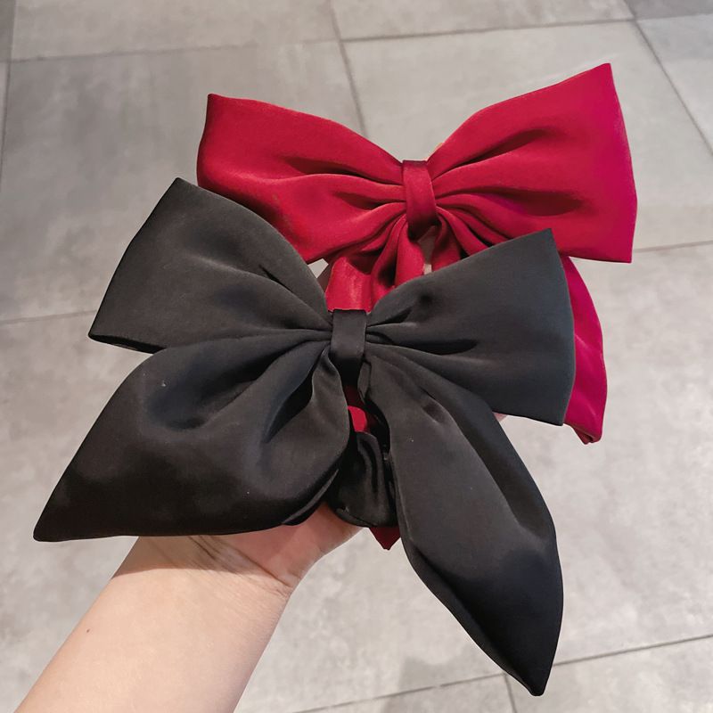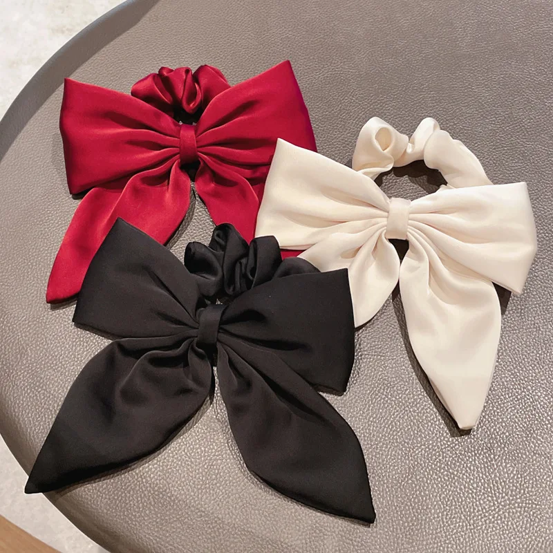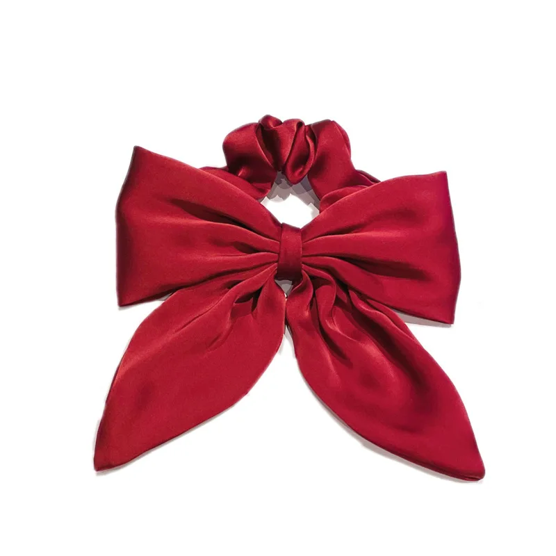 Vintage Red Large Satin Bow Elastic Hair Bands Ties for Women Girls Fashion Solid Rubber Bands Scrunchies Hair Accessories