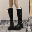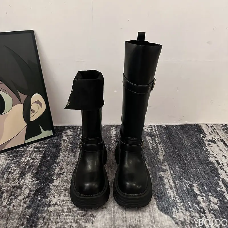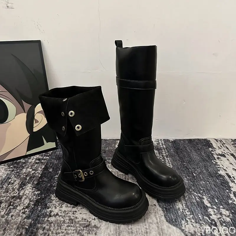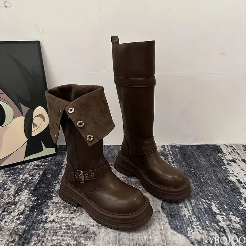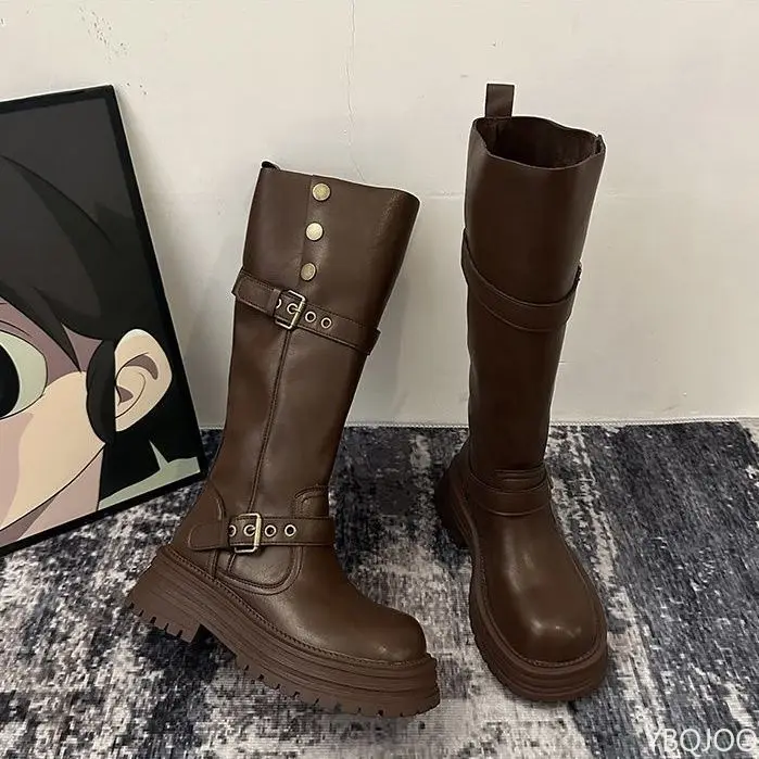 Vintage Square head Low Heels Ladies Shoes Winter Platform Women Thigh High Boots Fashionable versatile Belt Buckle Long Boots