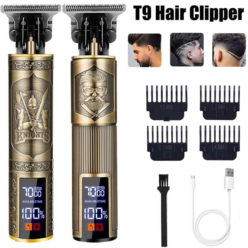Vintage T9 Hair Clipper 0mm Cordless Electric Hair Cutting Machine Precision Shaver Rechargeable Professional Men Beard Grooming Kit