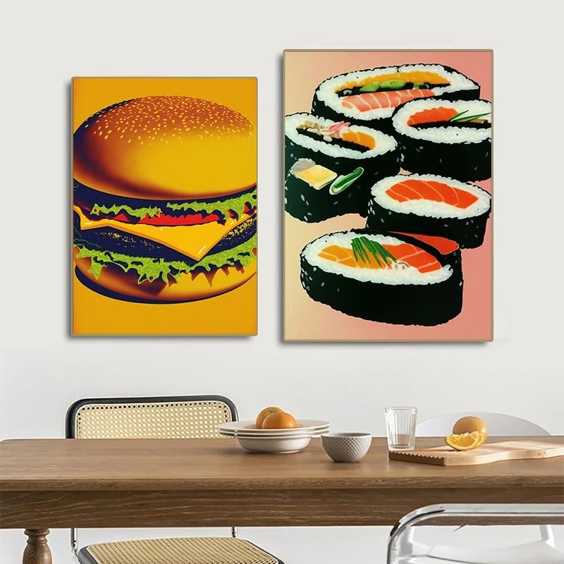 Vintage Taco Burger Sushi Pizza Poster Canvas Painting Wall Art Pictures Unique Kitchen Restaurant Home Decor Food Lover Gift