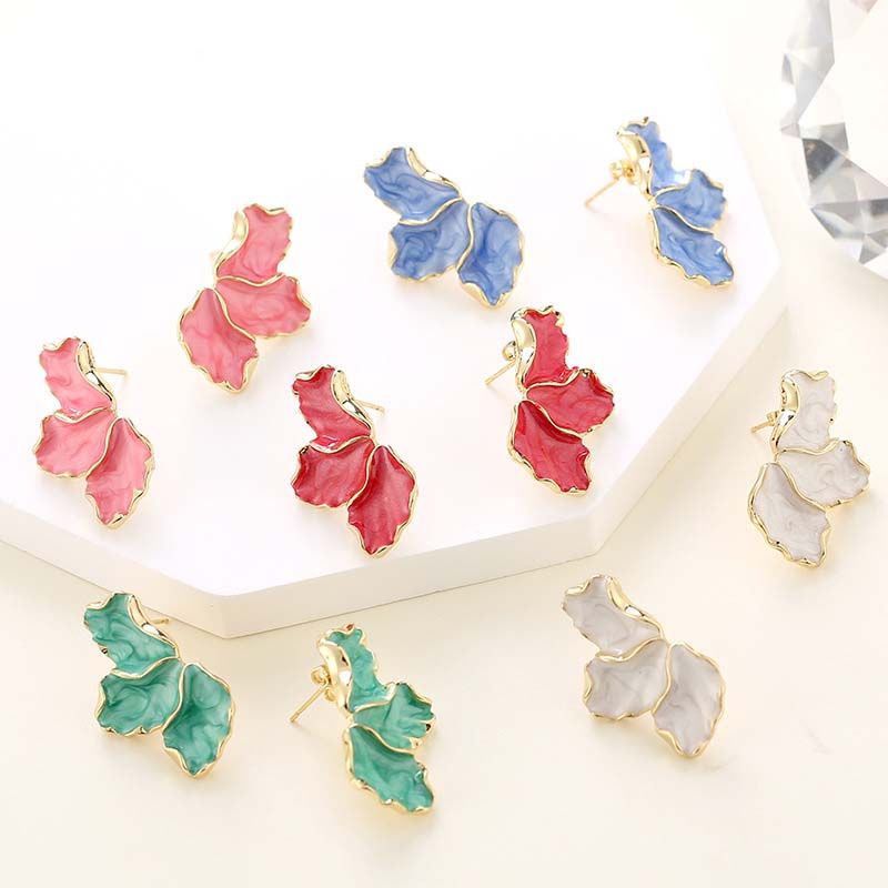 Vintage White Oil Dripping Flower Stud Earrings For Women Korean Metal Irregular Petal Post Earrings Jewelry Party Accessories