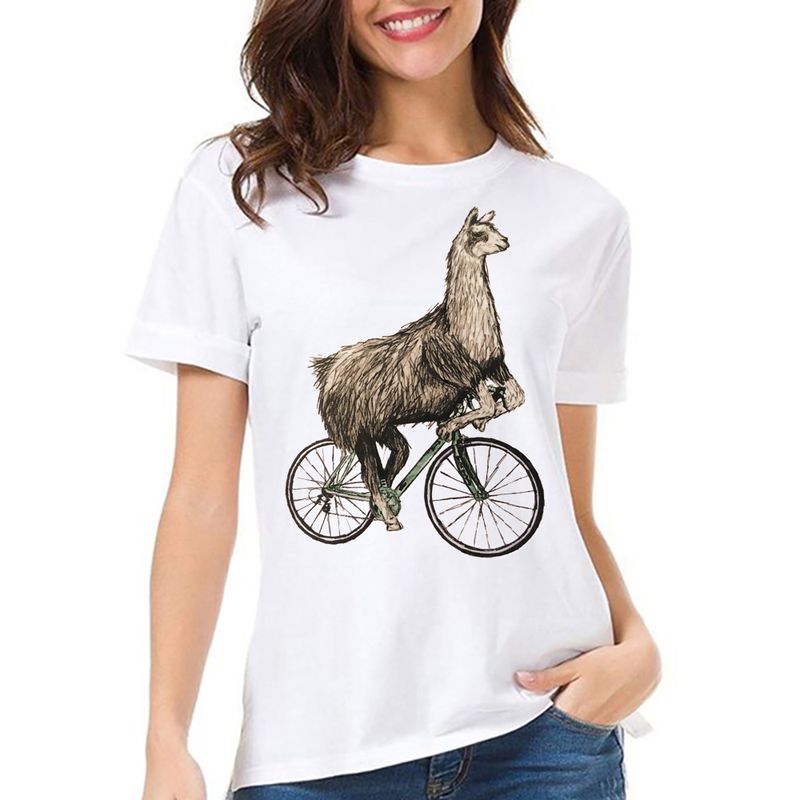 Vintage Women's Fixed Gear Bike Camel Print Top White 2XL