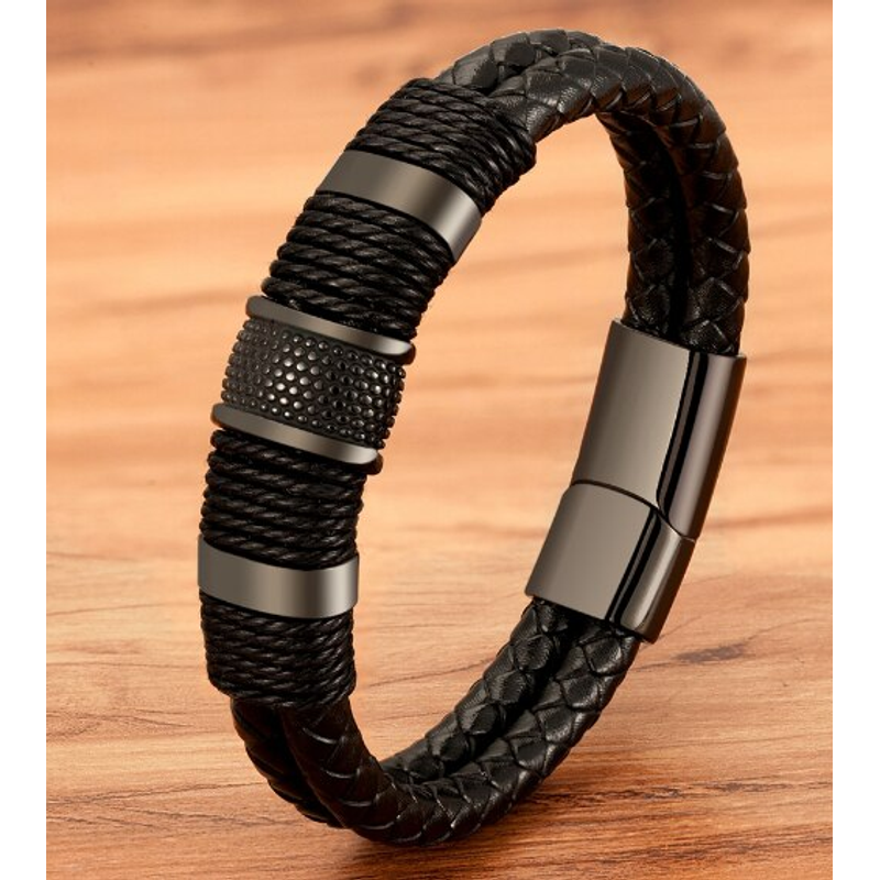Vintage Woven Leather Rope Wrap Bracelets For Men Classic Stainless Steel Bangles Bracelets Punk Wristband Jewelry Male Gifts