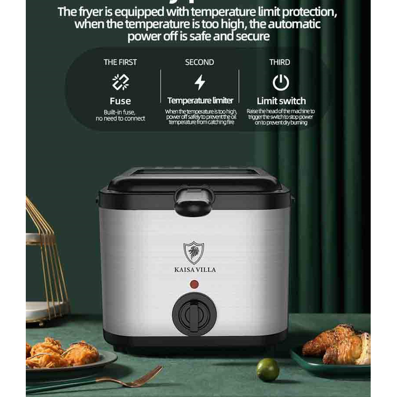 2.5L deep fryer, stainless steel + plastic body, detachable fried blue, easy to clean, suitable for home-made French fries, donuts, fried chicken legs, chicken wings and other foods