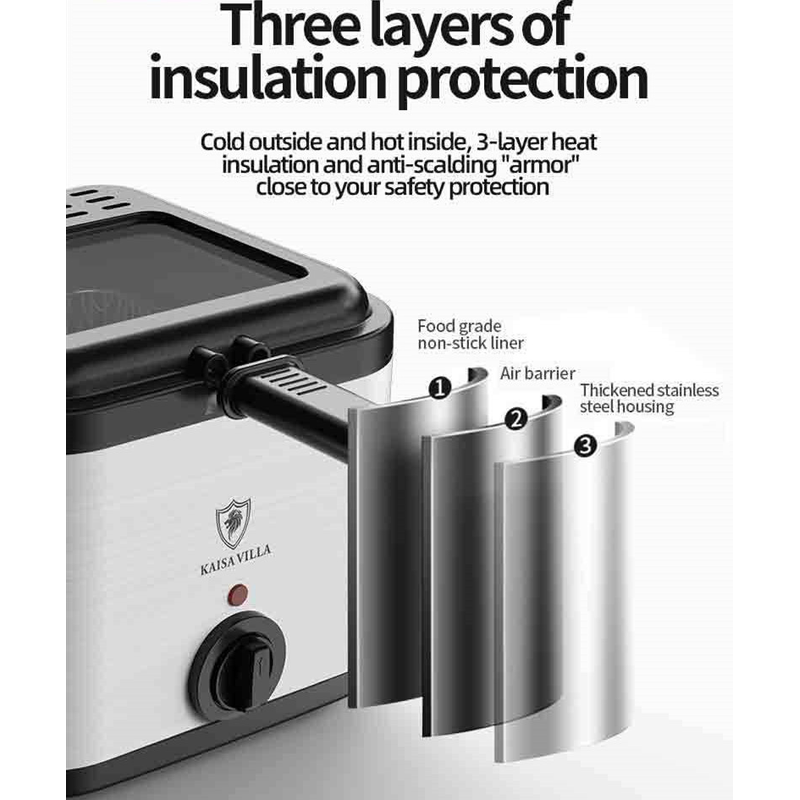 2.5L deep fryer, stainless steel + plastic body, detachable fried blue, easy to clean, suitable for home-made French fries, donuts, fried chicken legs, chicken wings and other foods