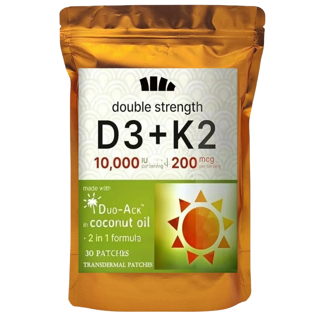 30 Patches Vitamin D3 & K2 Transdermal Patches Support Strong Bones & Muscle, Calcium Absorption & Immune Health