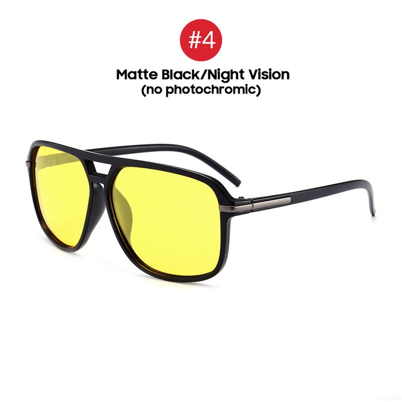 VIVIBEE Men Polarized Night Vision Glasses Yellow Retro Square Oversized Photochromic Goggles Women Fashion Driving Sunglasses