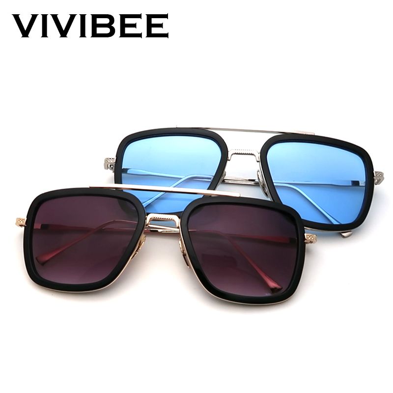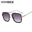 VIVIBEE Retro Square Men Edith Sunglasses Vintage Silver Metal Frame Blue Lens Glasses Fashion Women Steampunk Eyewear