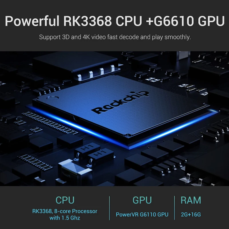 CPU: Rockchip RK3368 Octa-Core Cortex-A7 up to 1.4GHz