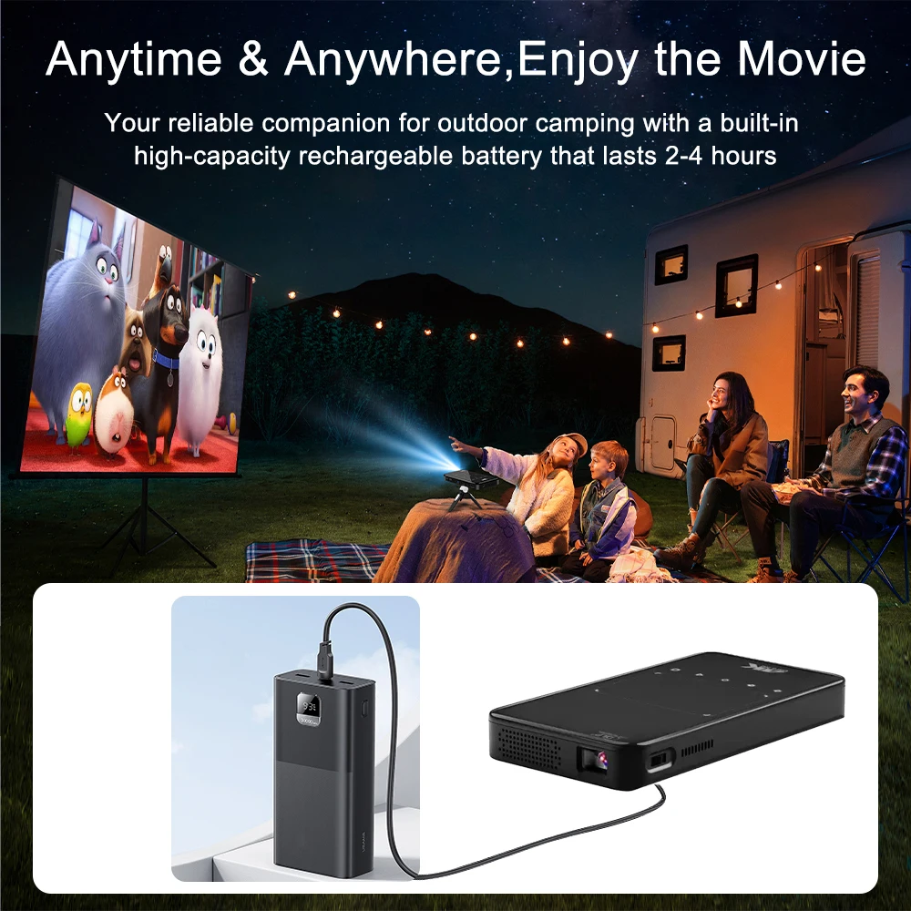 【2-Hour Battery + Power Bank on the Go 】— Built-in 4000mAh battery for cordless viewing up to 2 hours, plus charge your phone in emergencies — perfect for outdoor adventures or blackout movie sessions!