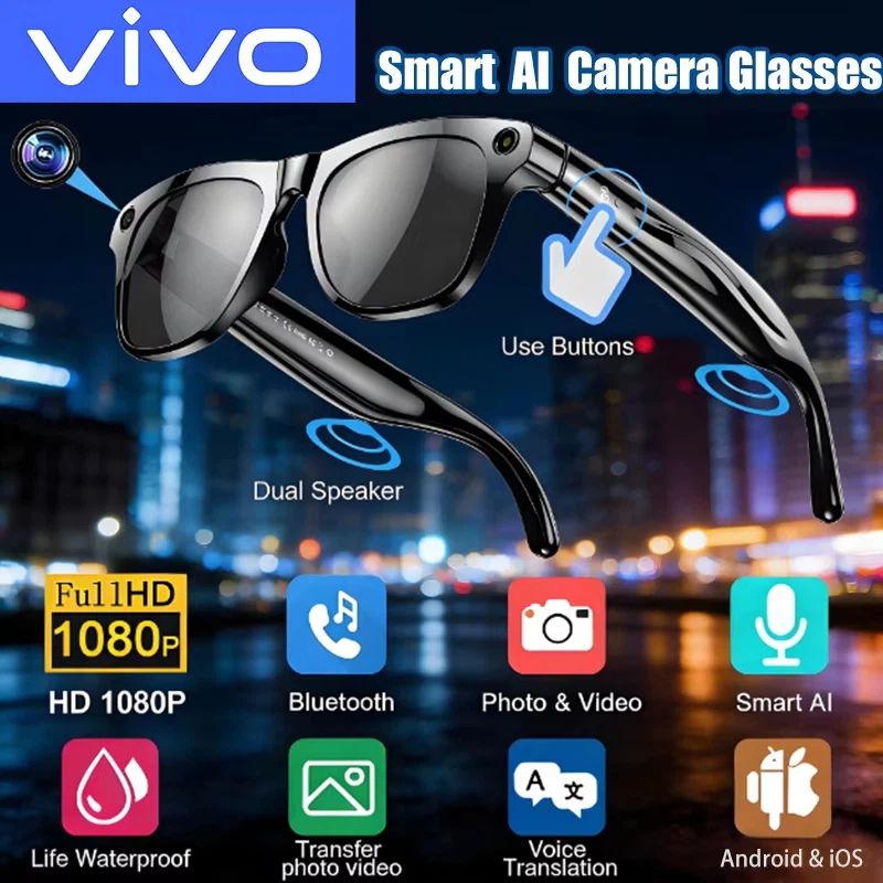 VIVO AI Smart Glasses 8K HD Photochromic Multifunction Bluetooth Calling Voice Assistant Music Player Translate Camera HOT