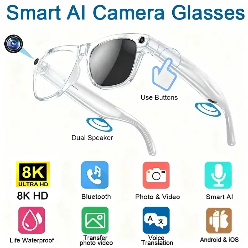 ViVO 8K Smart Glasses 1200MP Camera Bluetooth Call Voice Assistant Music Player Translate Photochromic HD Glasses