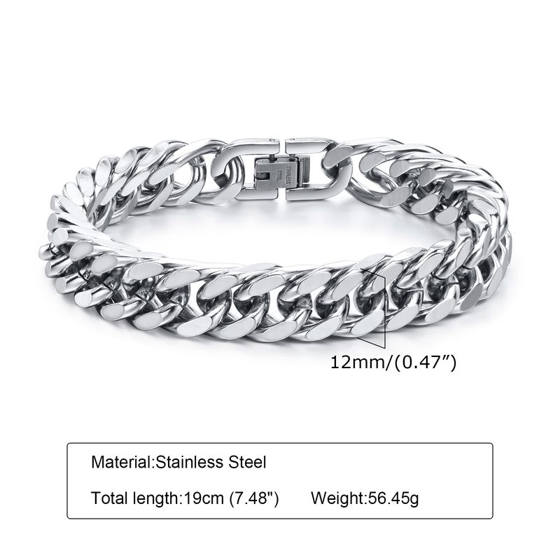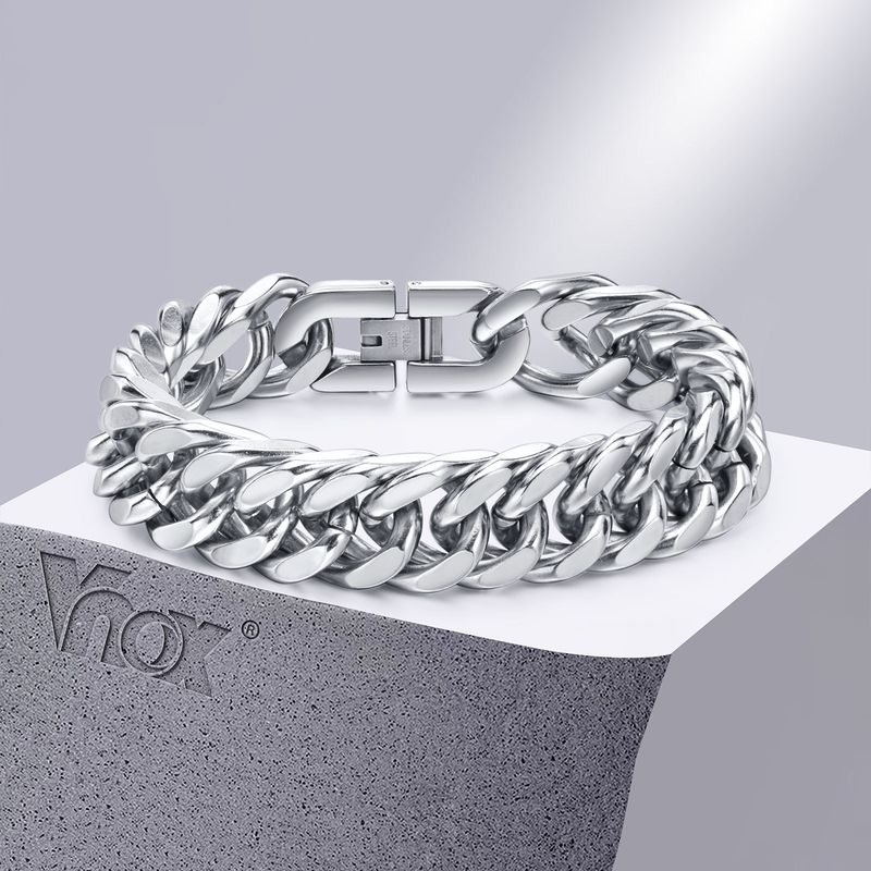 Vnox 12/15MM Width Stainless Steel Cuban Chain Bracelets for Men, Silver Color Fashion Hip Hop Male Boy Wristband Jewelry