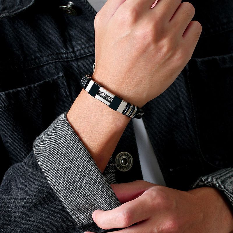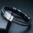 Vnox 13mm Bracelet for Men,Grooved Silicone with Stainless Steel Mesh Band,Casual Male Bangle,Stylish Black Wristband Gift