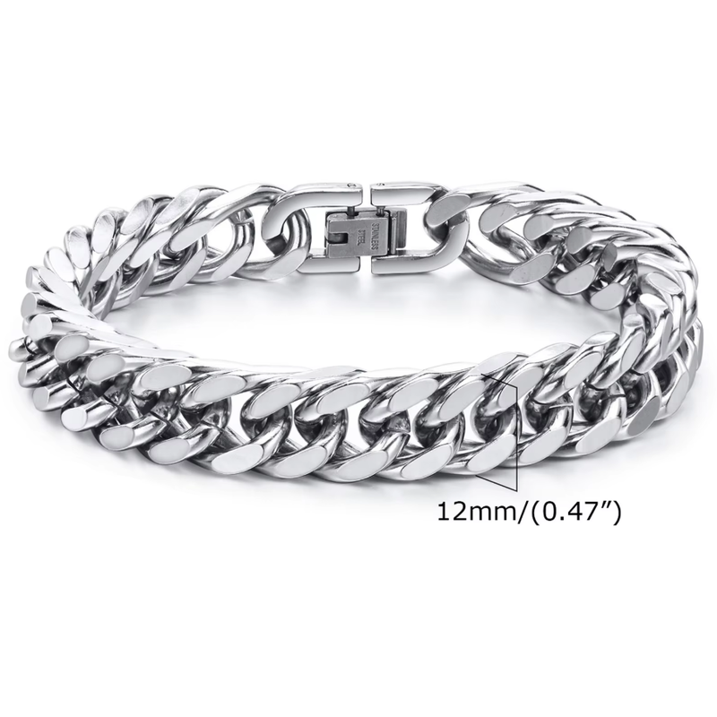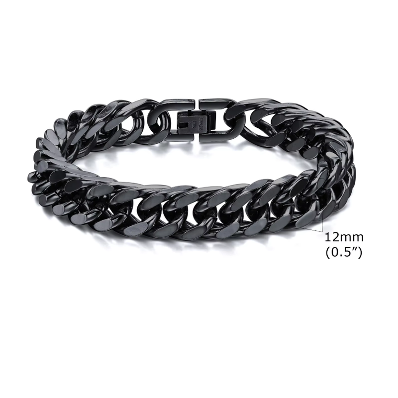 Vnox 8mm/12mm Bold Heavy Stainless Steel Cuban Bracelets for Men Boys,Oxidized Metal Wristband,Punk Rock Chain Bracelet Jewelry