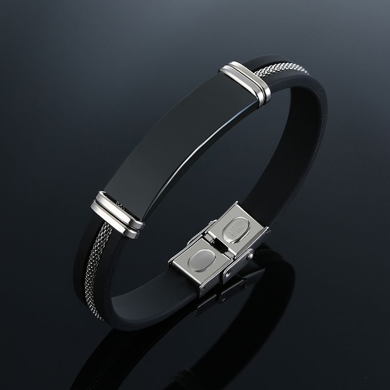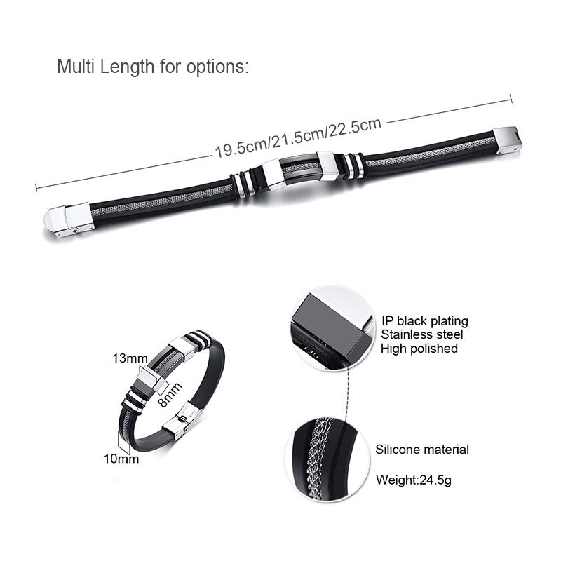 Vnox Stainless Steel Bracelet Men Wrist Band Black Grooved Rudder Silicone Mesh Link Insert Punk Wristband Stylish Casual Bangle
