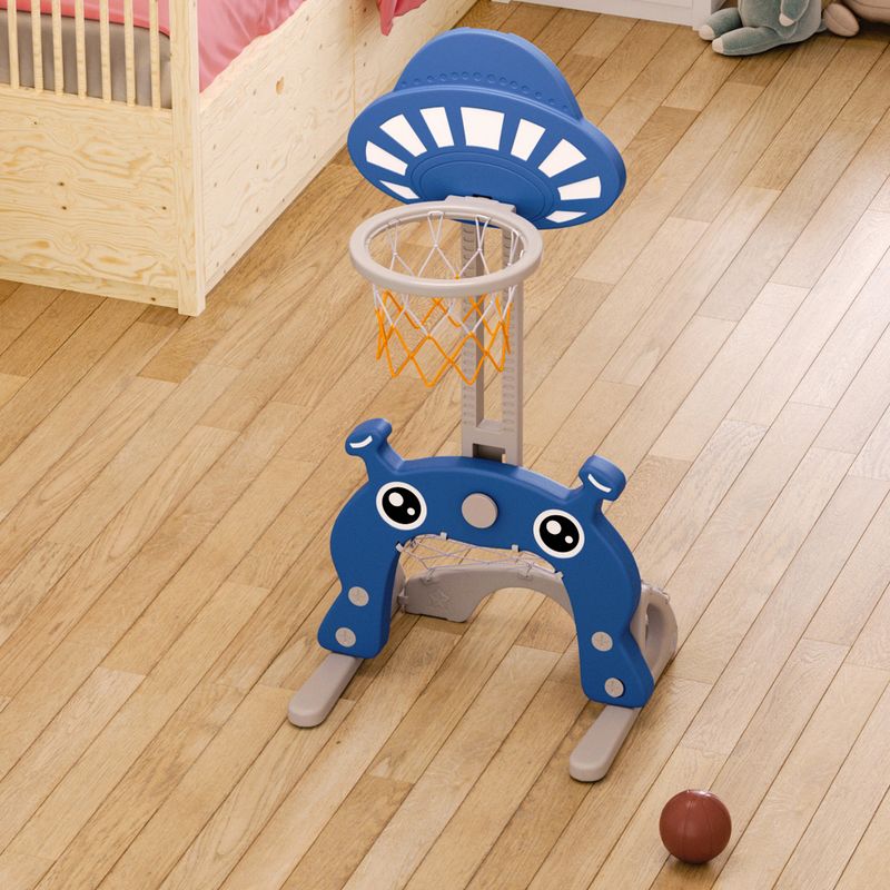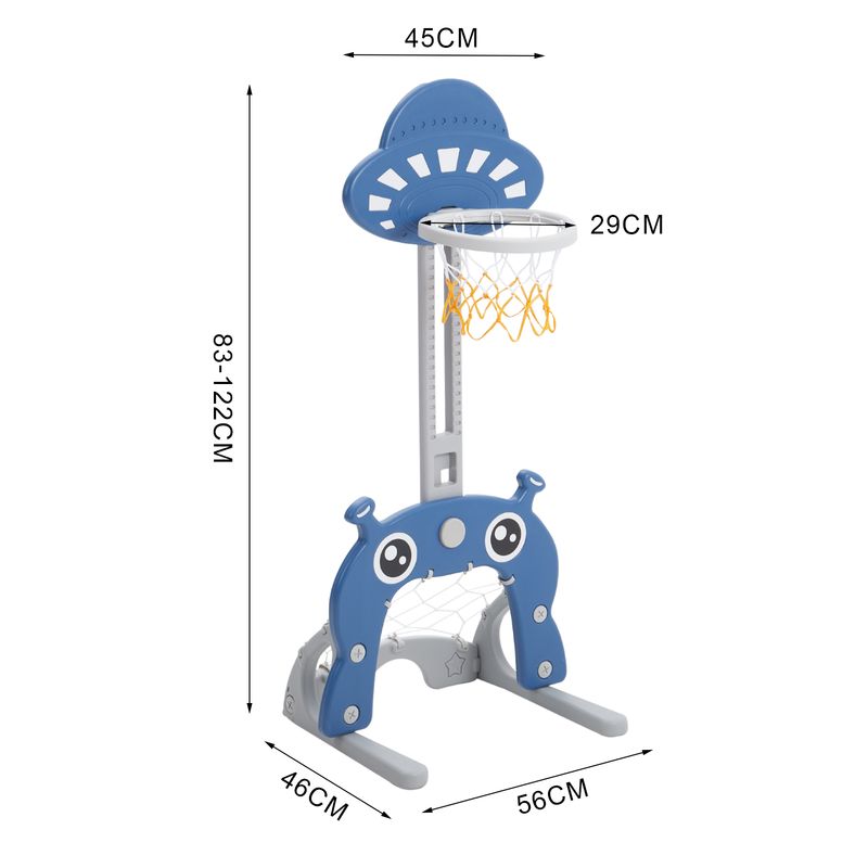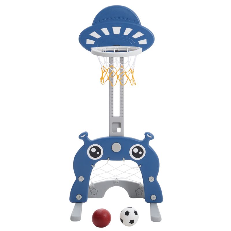 This 2 in 1 toddler basketball hoop and football goal is a versatile and interactive toy designed for young children. It features a sturdy base and adjustable height, making it perfect for children of different ages and heights. The set is made of durable plastic and comes with a mini basketball and a football, making it a great way to encourage physical activity and develop hand-eye coordination. The toy can be used not only in the house, but also outside, e.g. in the courtyard.